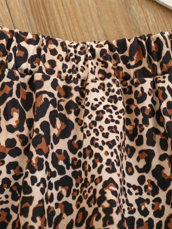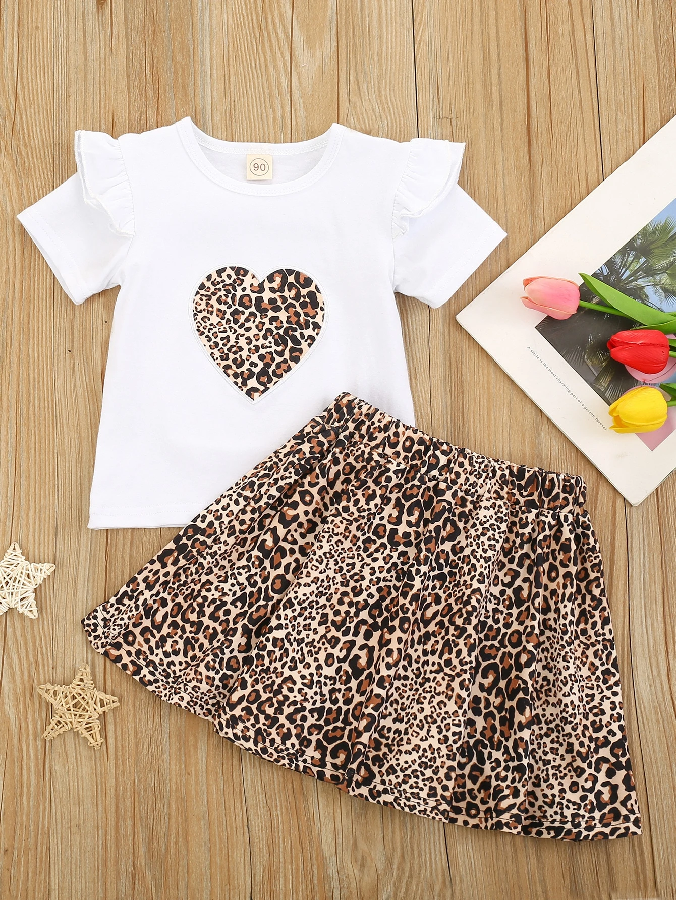 تنورة مع تي شيرت بطباعة قلب نمط الفهد للبنات الصغار