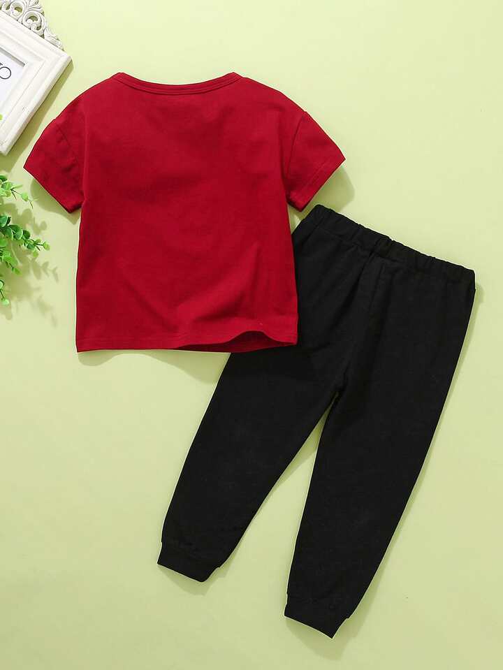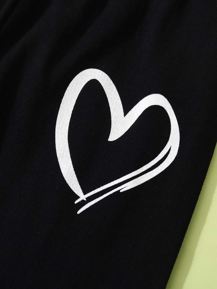 سروال رياضي مع تي شيرت بطباعة قلب وعبارة للبنات الصغار