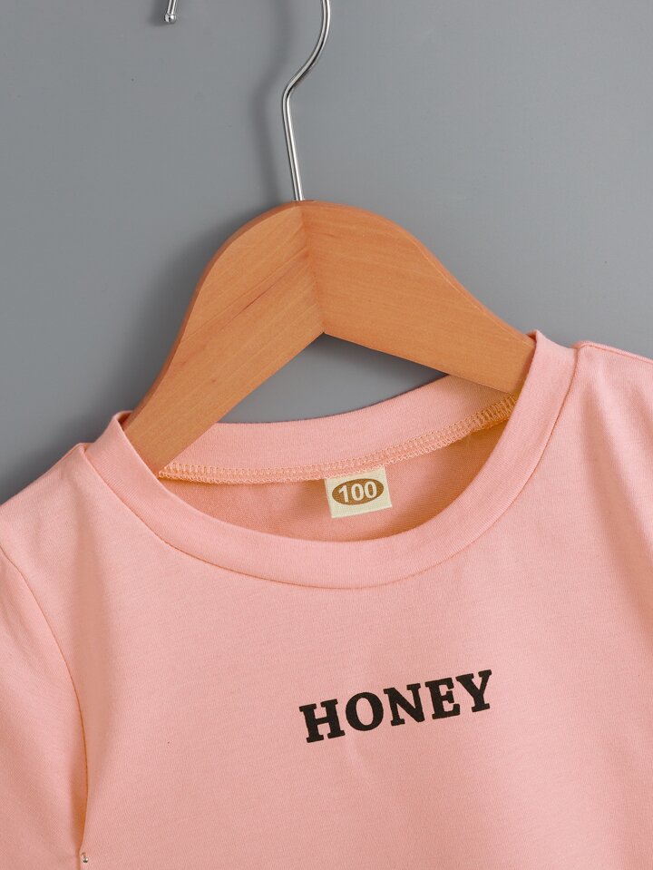 تي شيرت قصير بجرافيك عبارة للبنات الصغار