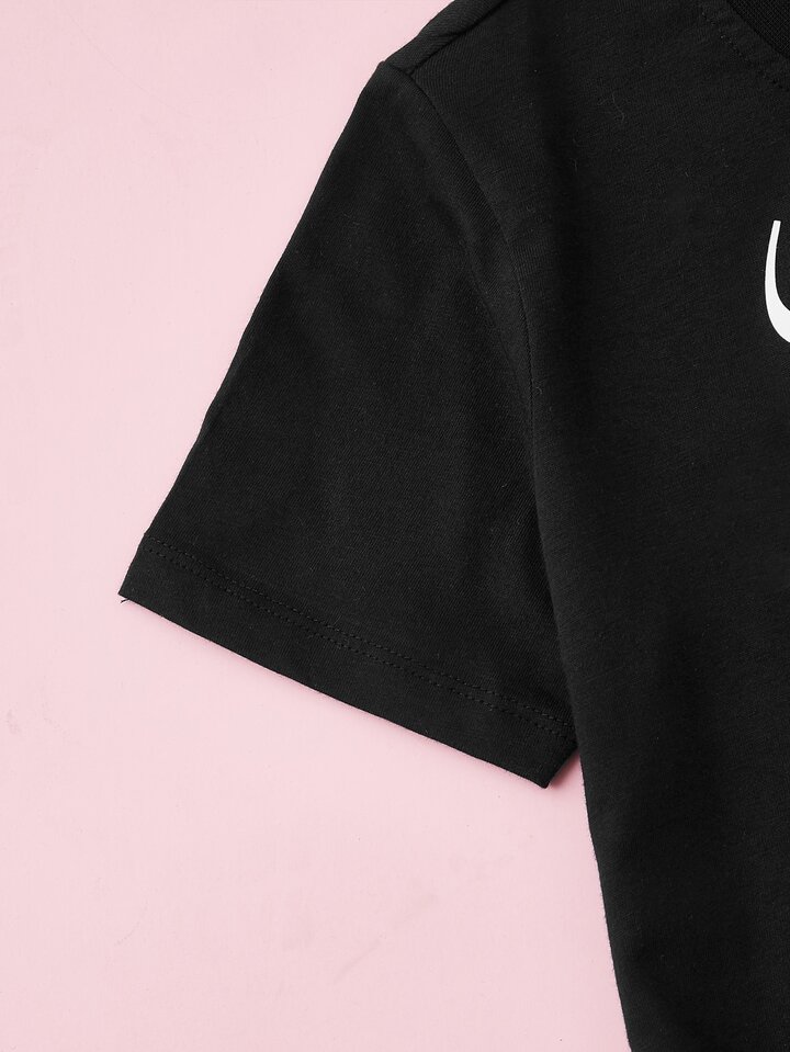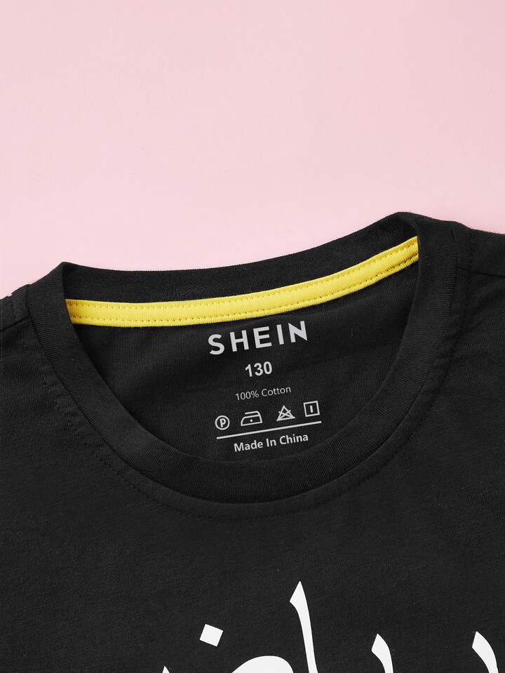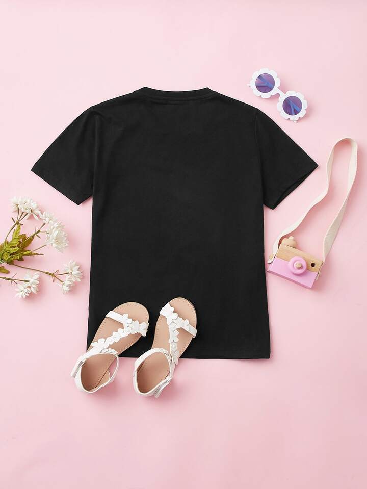 تي شيرت بعنق مدور بجرافيك عبارة للبنات الصغار