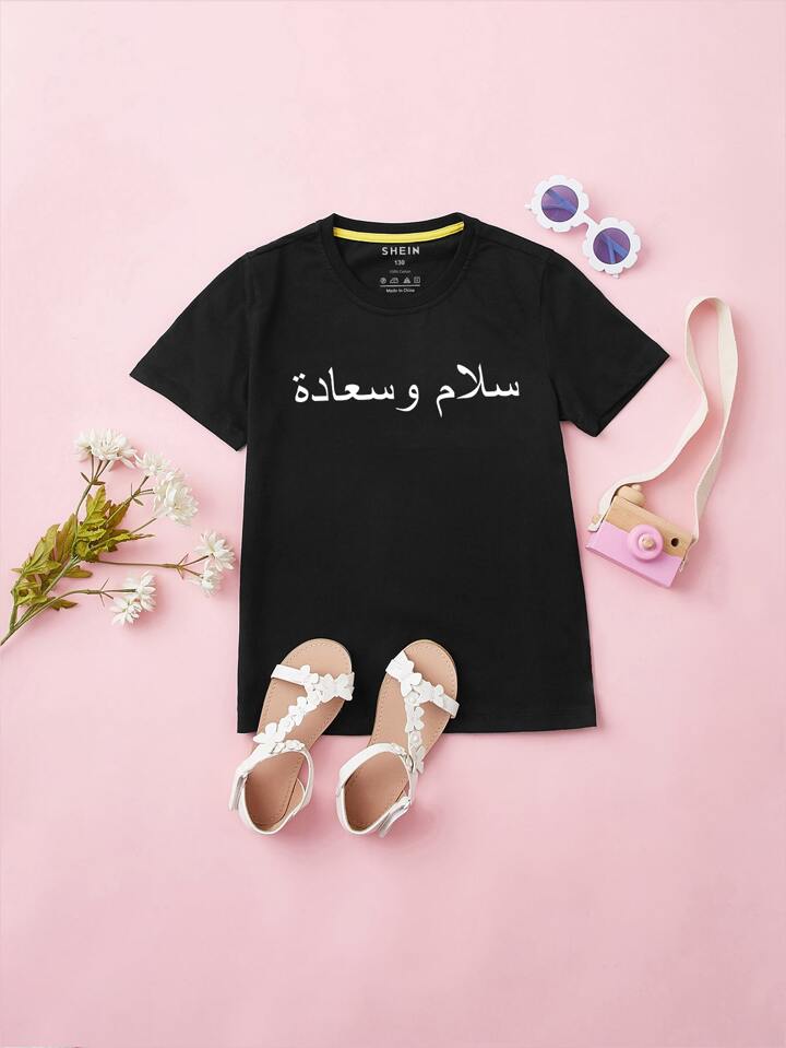 تي شيرت بجرافيك عبارة للبنات الصغار