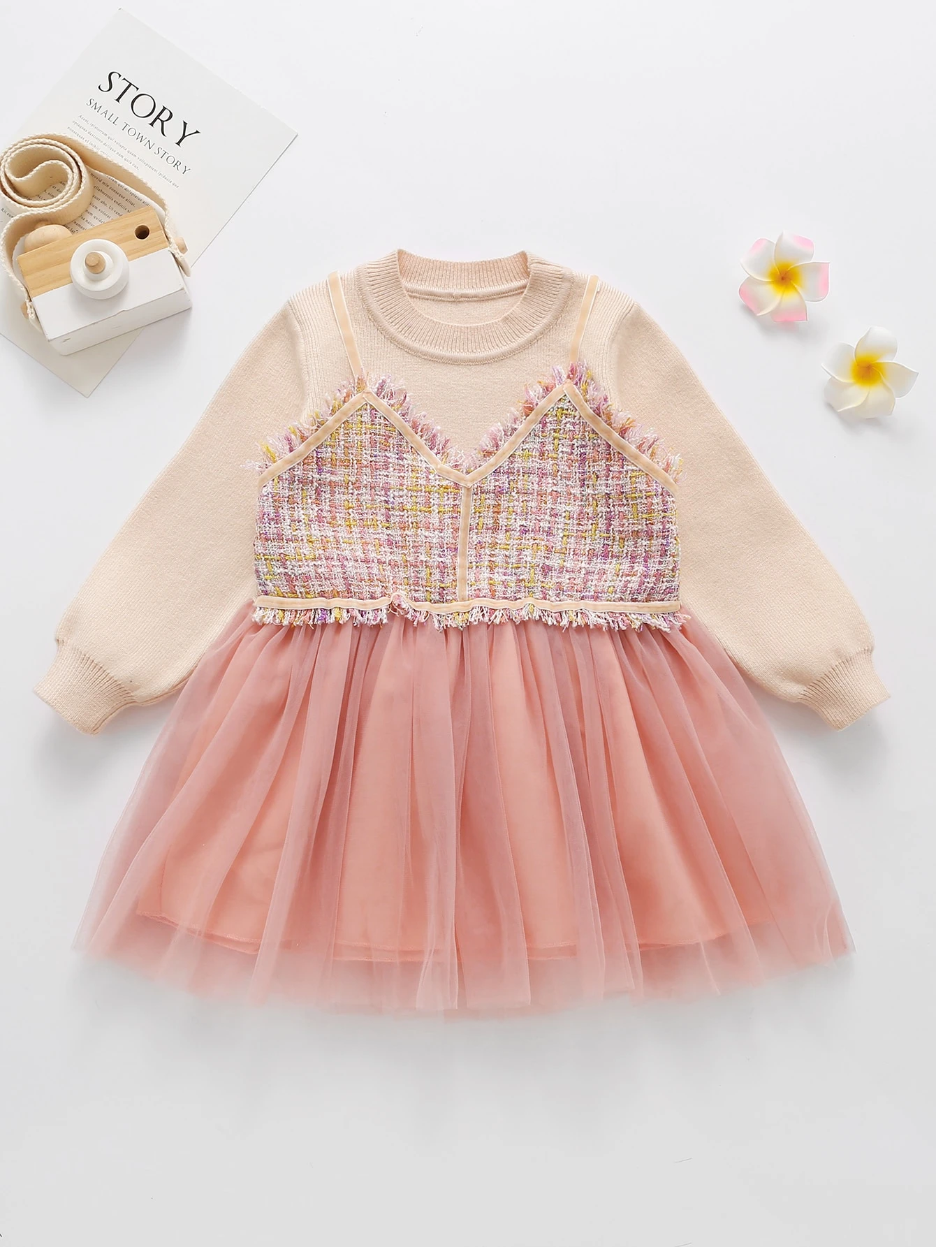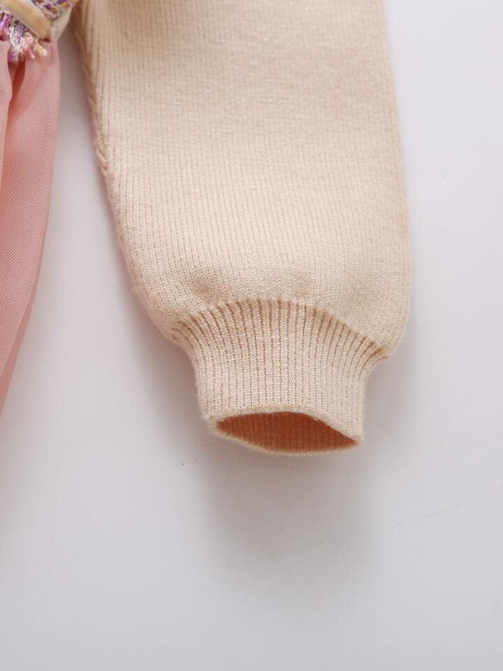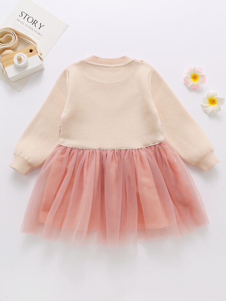 فساتين صوفي للبنات الصغار شبكة المتباين حاجز اللون كاجوال