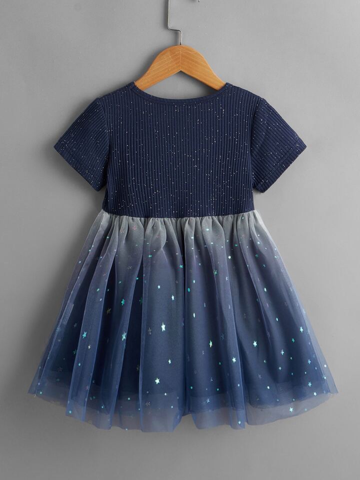 فستان بحافة شبكي متباين ألوان متدرجة للبنات الصغار