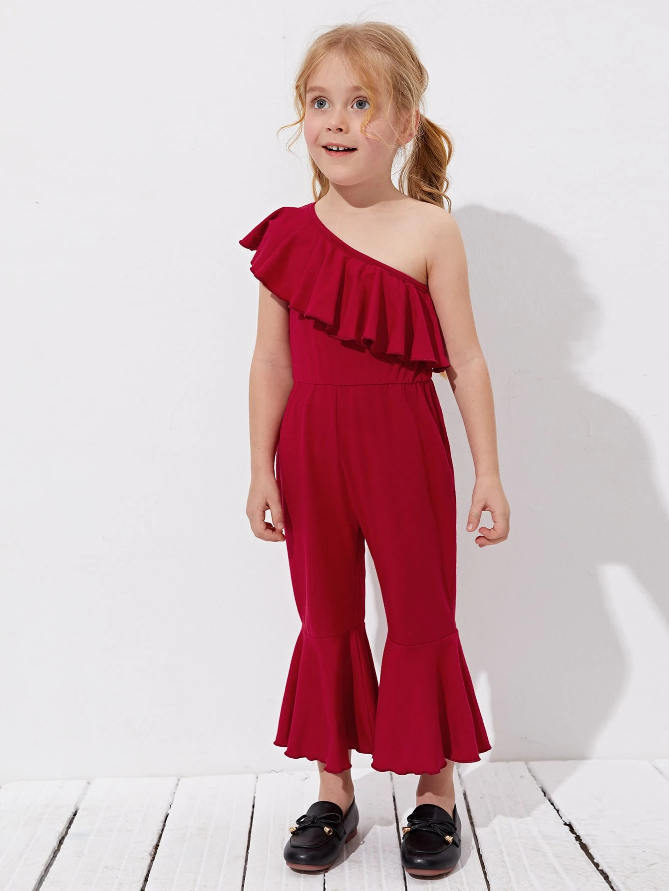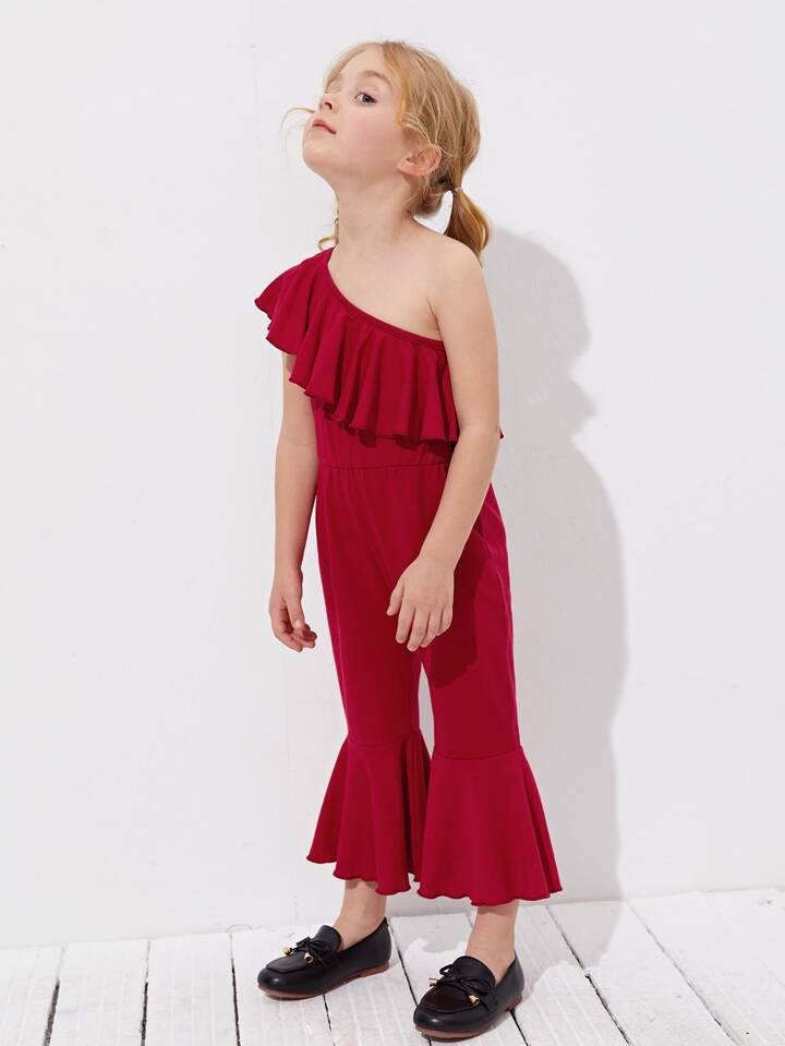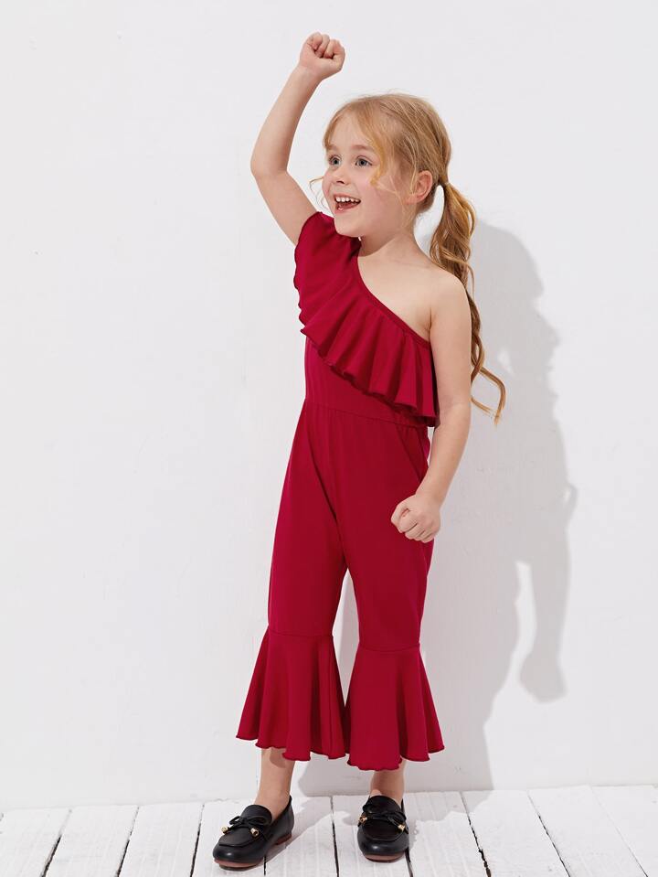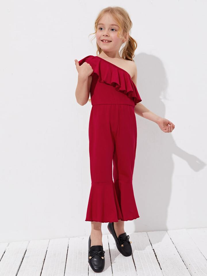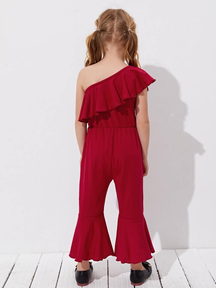 جمبسوت بساق واسع من الاسفل مقلم بكشكش بكتف واحد للبنات الصغار