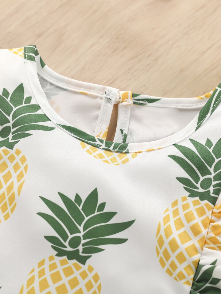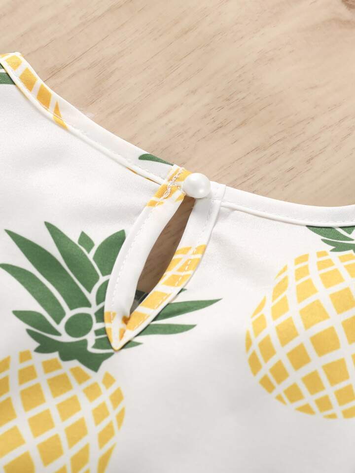 توب بأطراف مكشكشة وطباعة أناناس مع شورت طفلة صغيرة