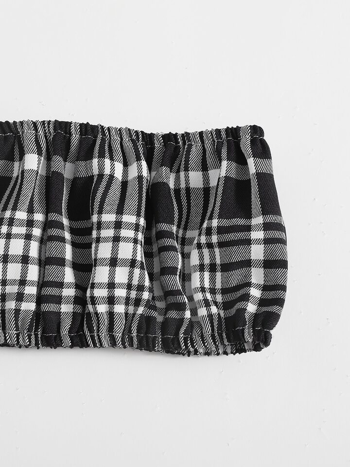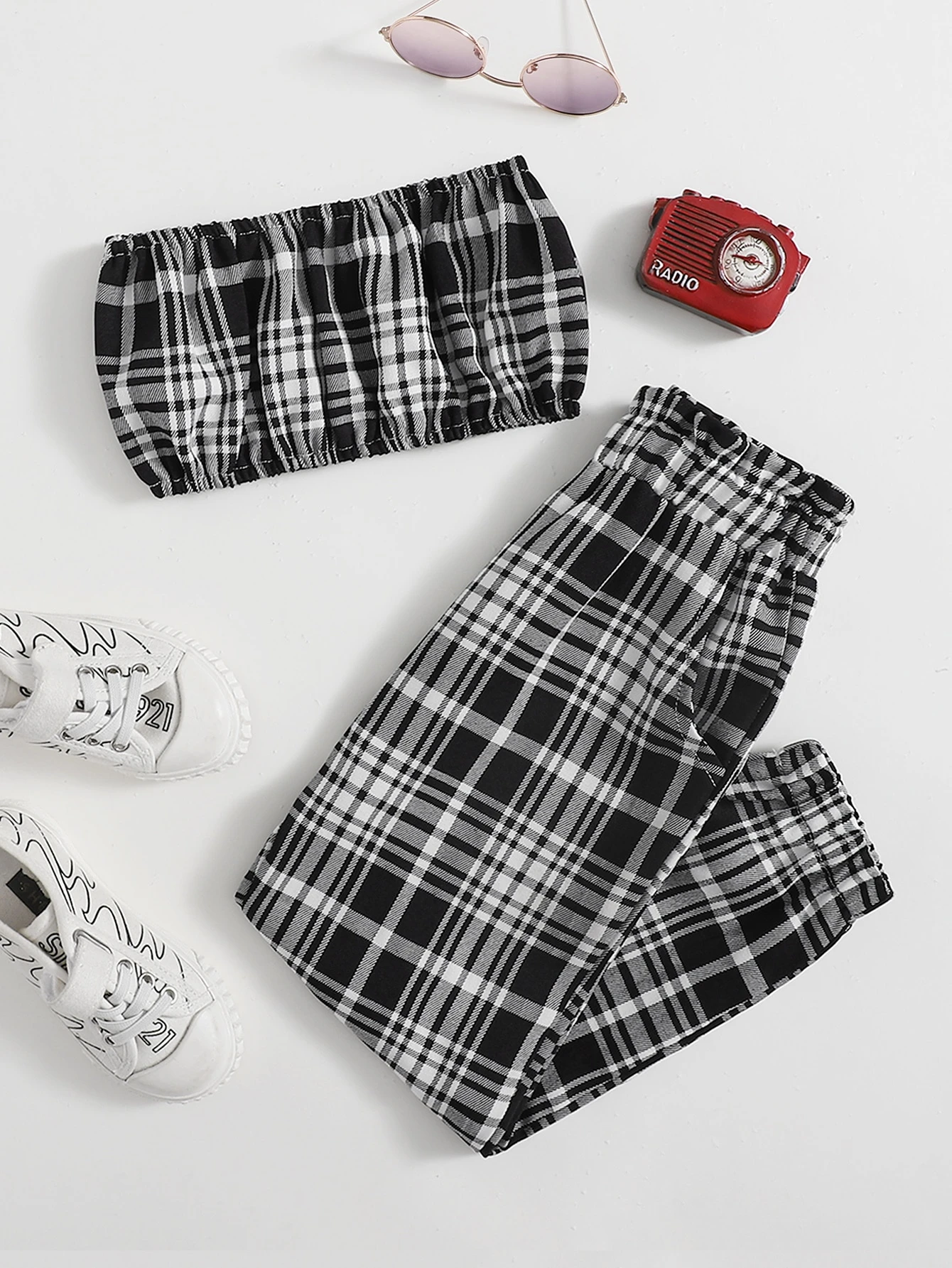 صدرية باندانا مربع النقش مع بنطلون للبنات الصغار