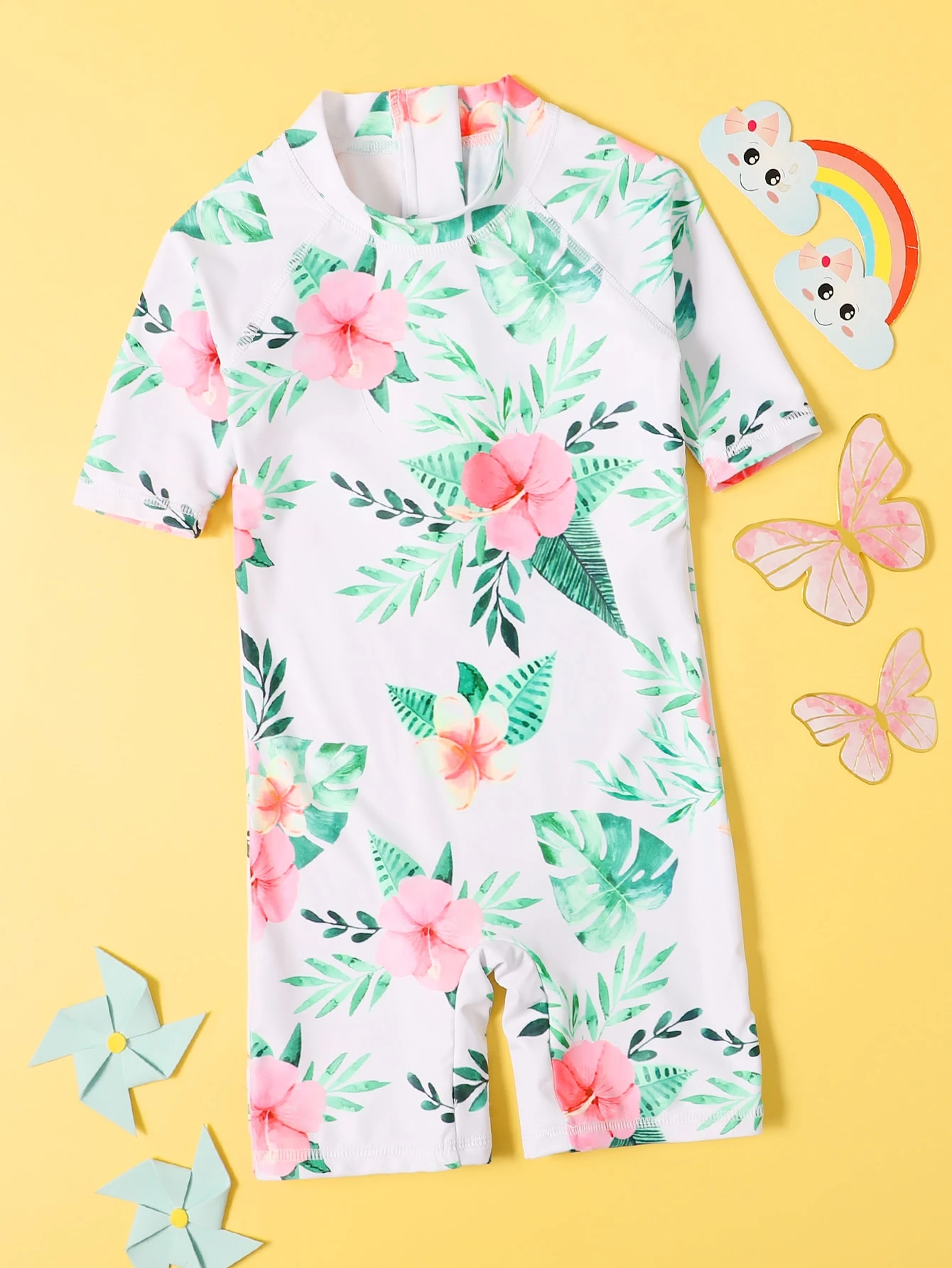 ملابس سباحة قطعة واحدة مزهر عشوائي للبنات الصغار