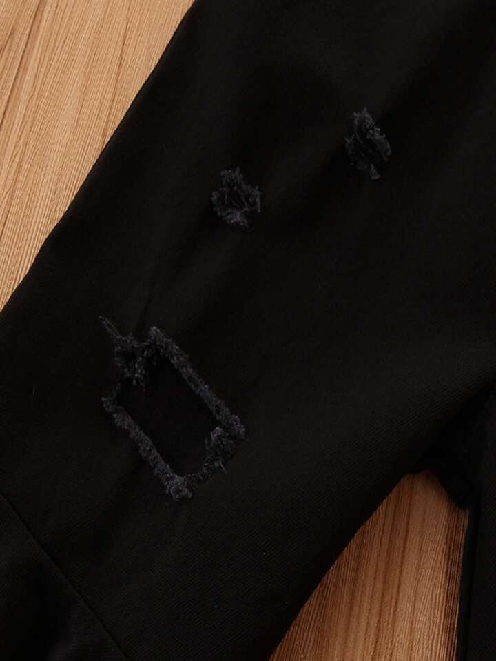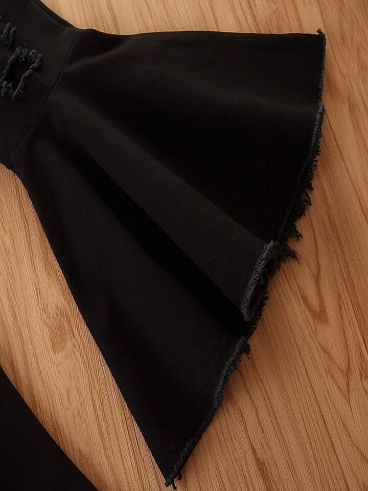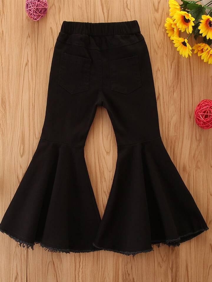 بنطلون جينز بساق واسع من الاسفل بحافة مسطح مضلع للبنات الصغار