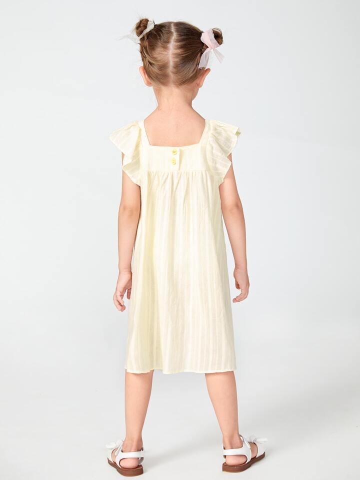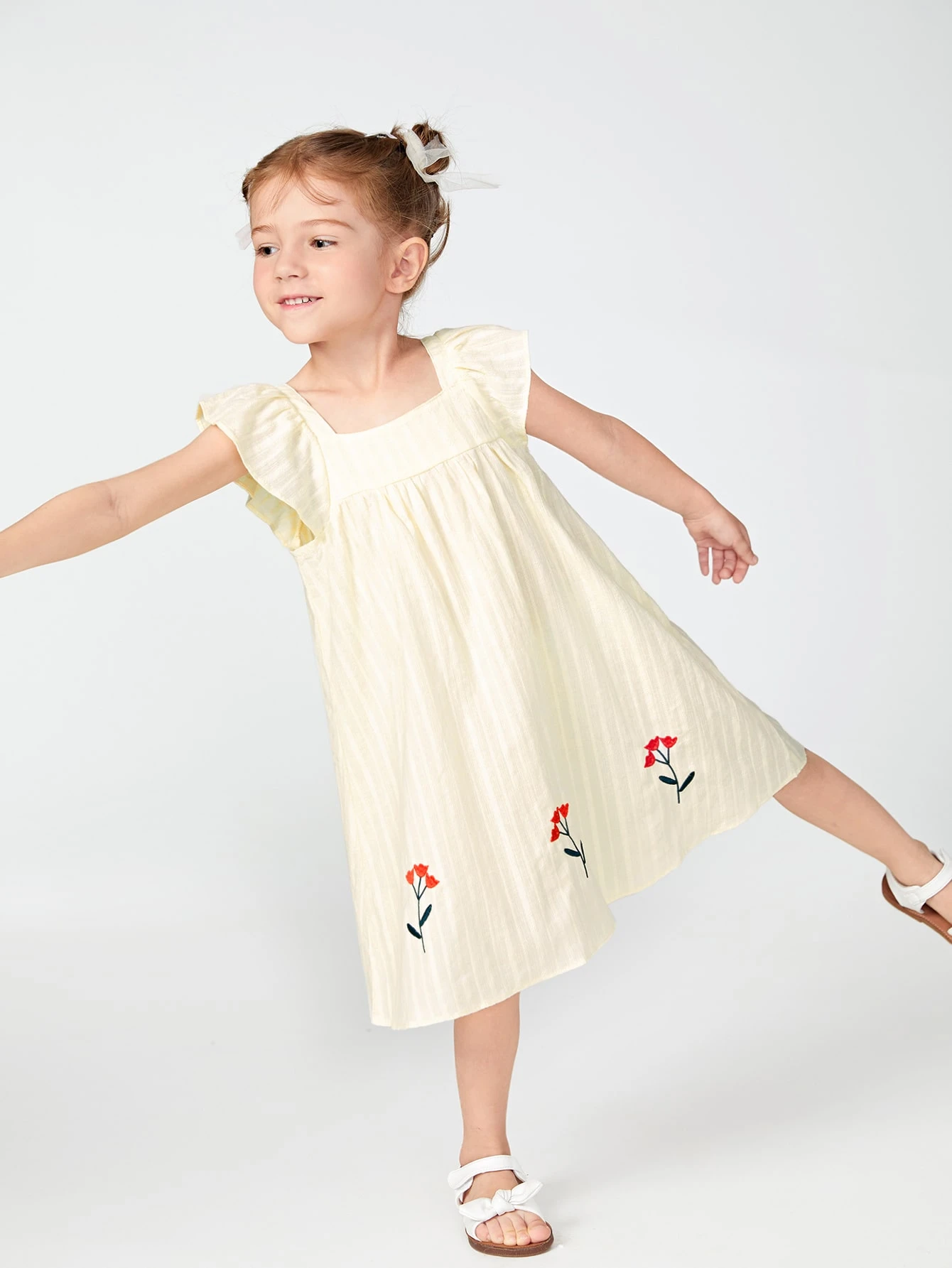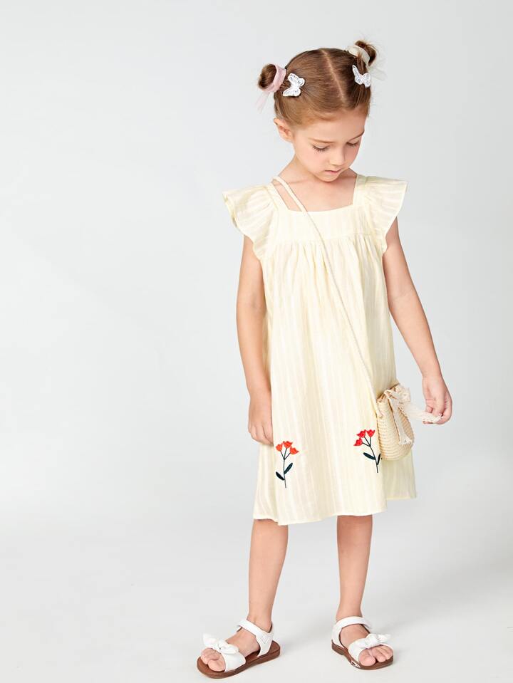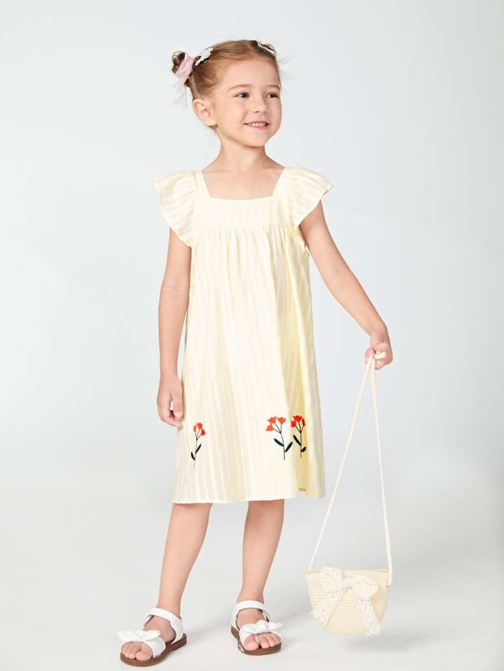 فستان مطرز بزهر بكتف مكشكش للبنات الصغار