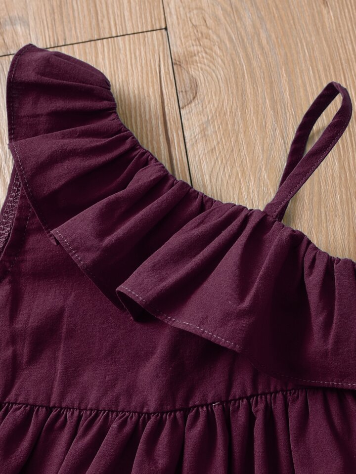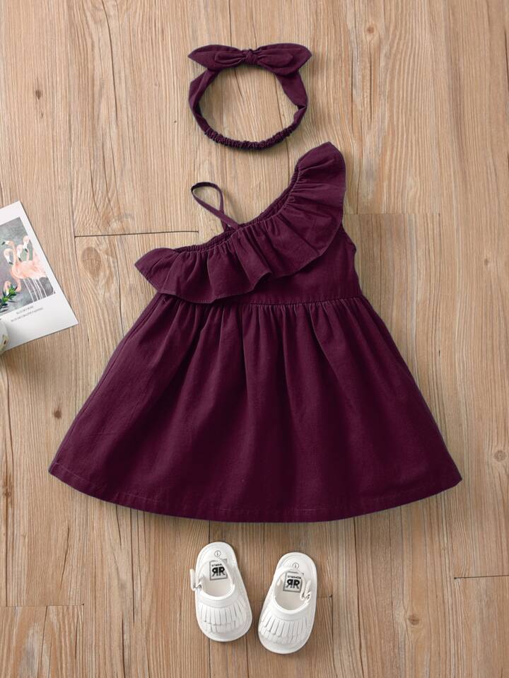 فستان بيبيدول كشكش ياقة غير متماثل مع عصابة رأس للبنات الصغار