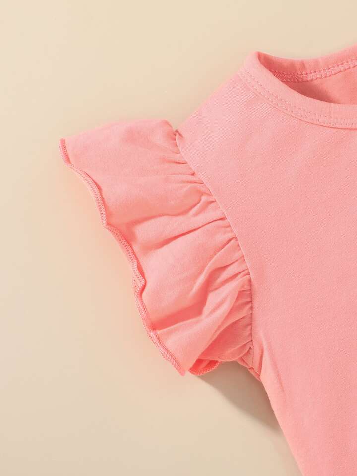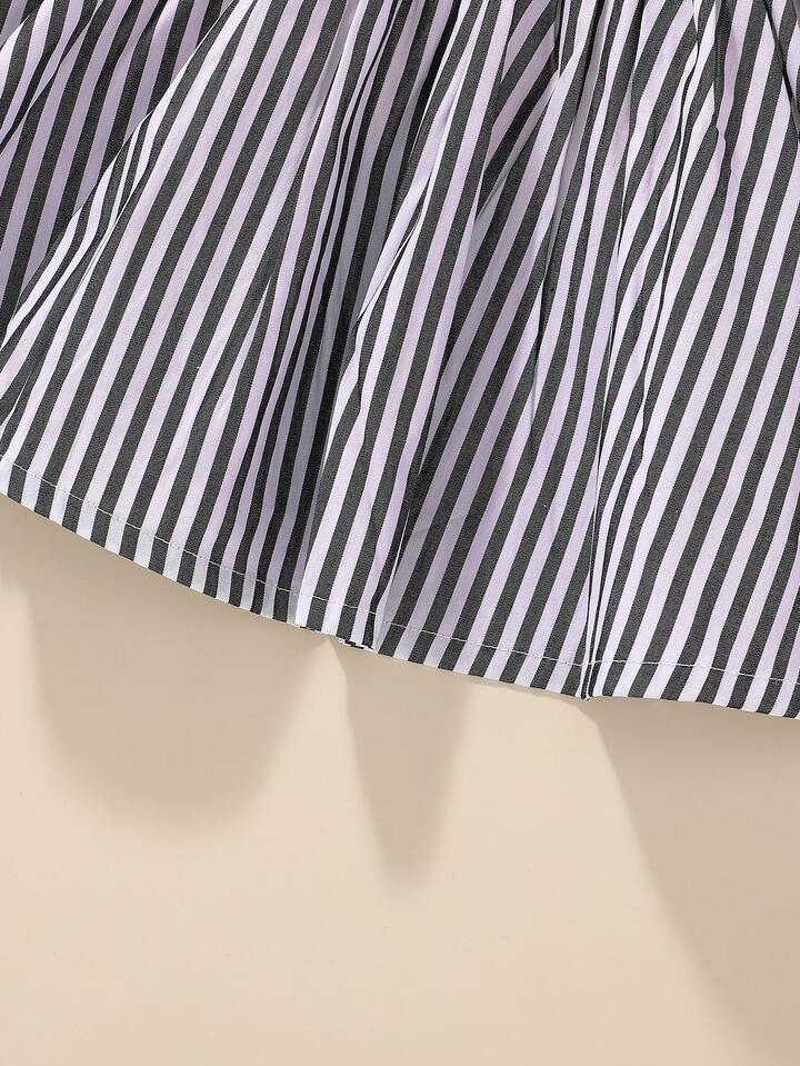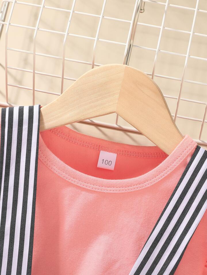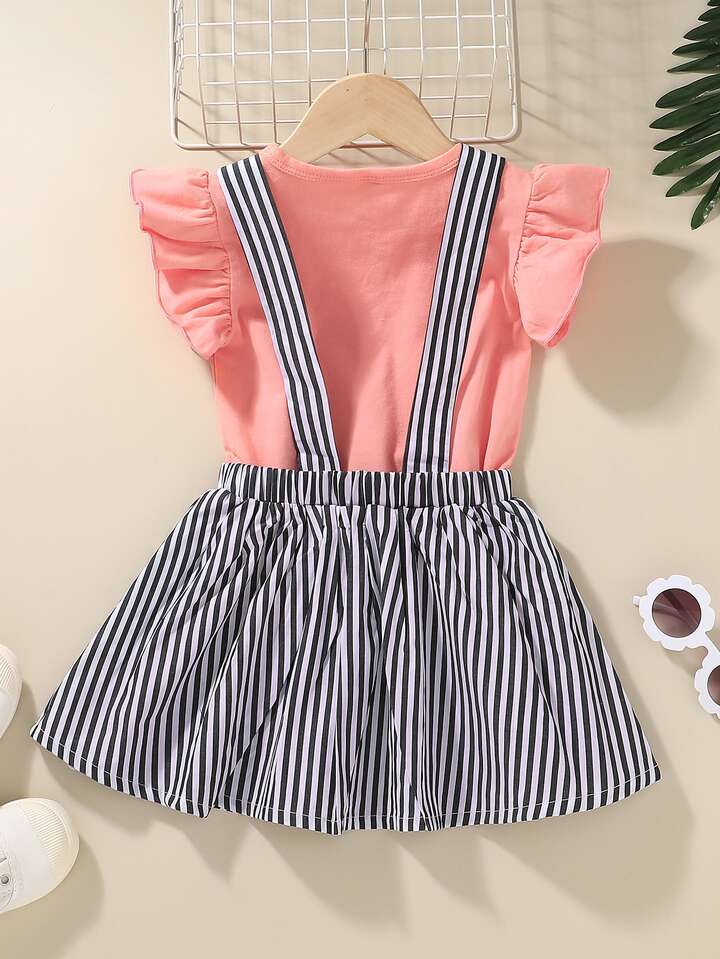 تنورة بحمالات مخطط مع تي شيرت بكفة مكشكش للبنات الصغار