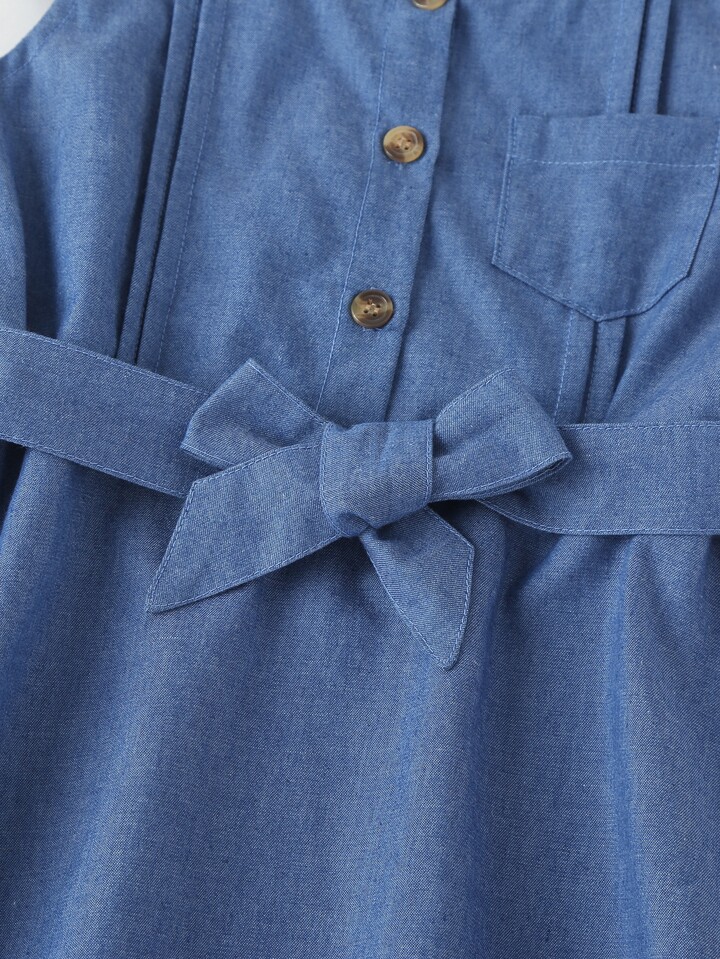 فساتين جينز للبنات الصغار الزر الصاف كاجوال