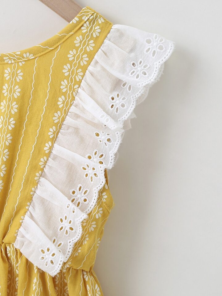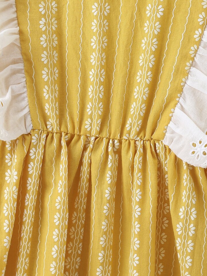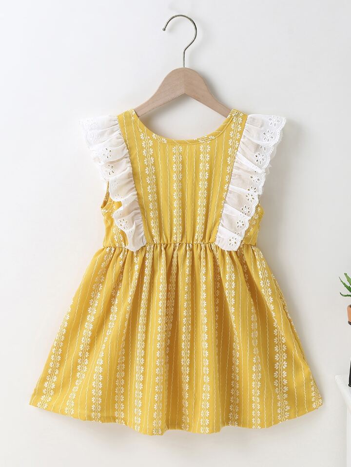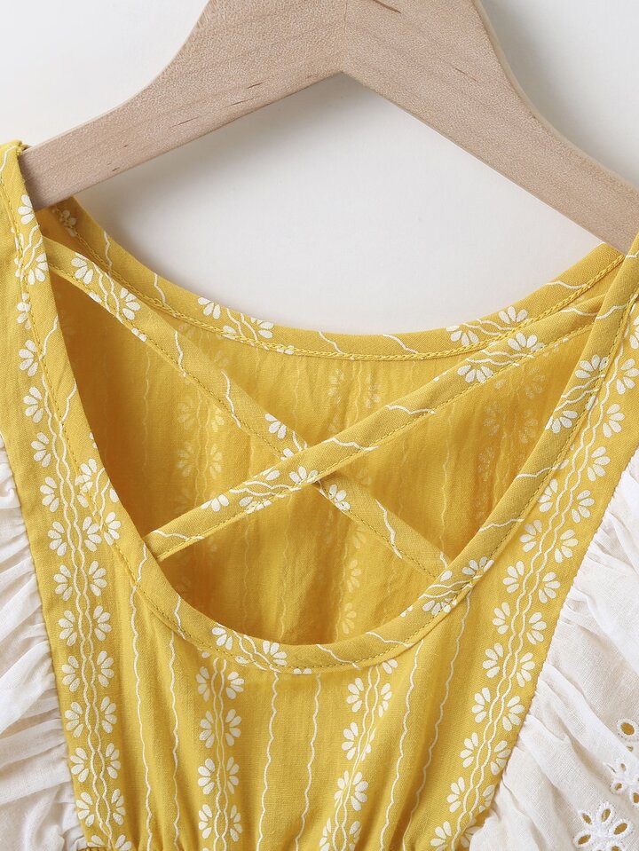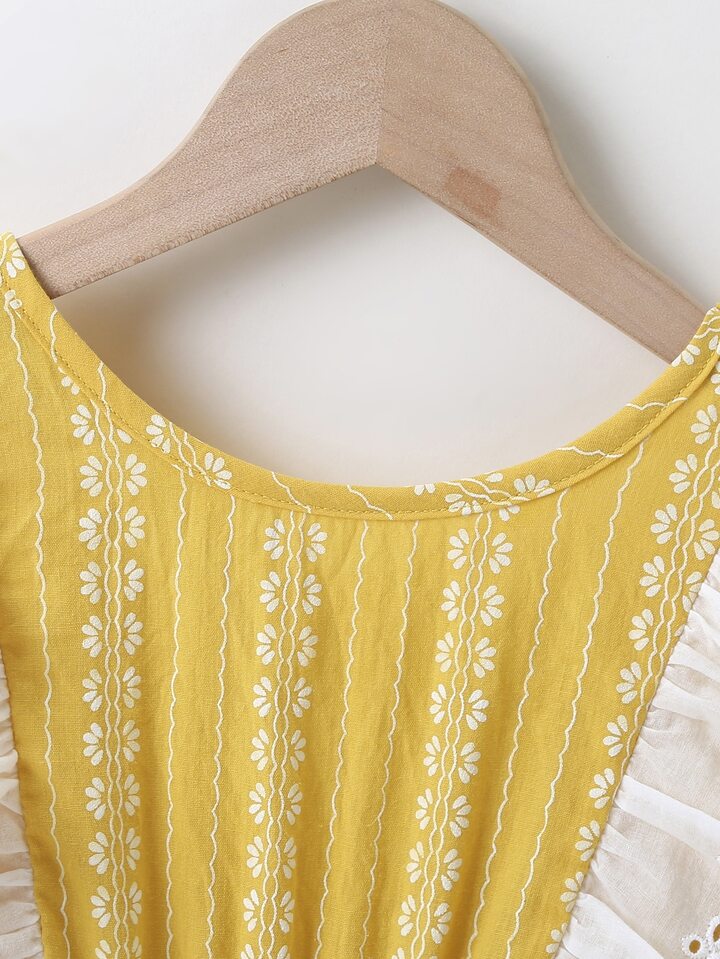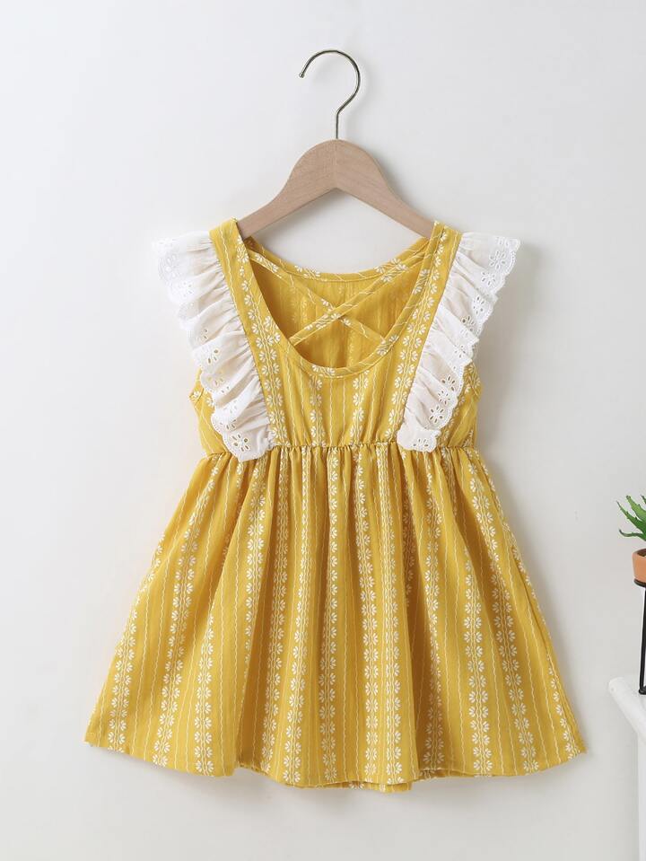 فستان بظهر متقاطع ومقلم مكشكش للبنات الصغار