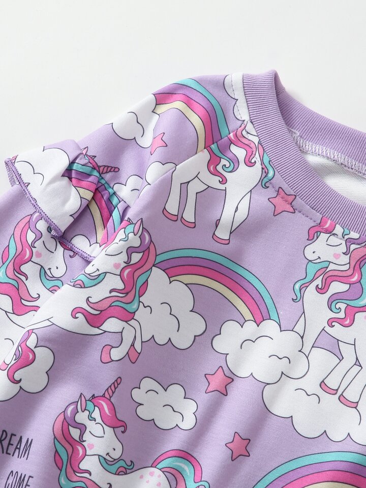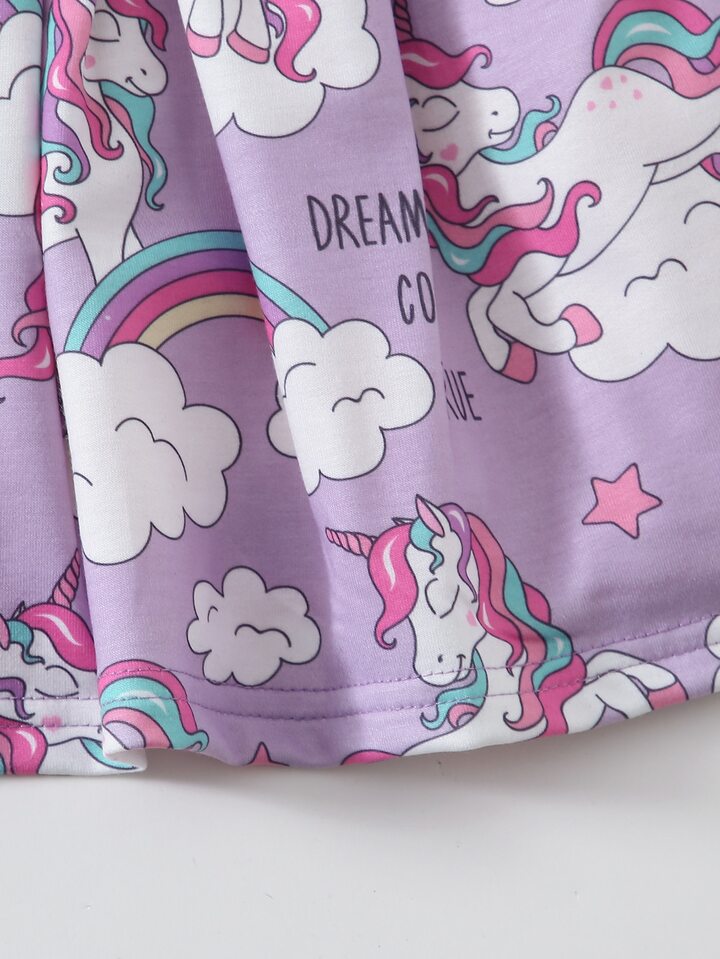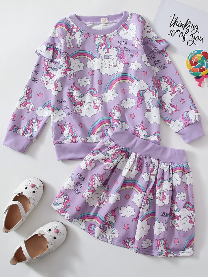 تنورة مع قميص ثقيل مكشكش بجرافيك رسوم كارتون وشعار للبنات الصغار