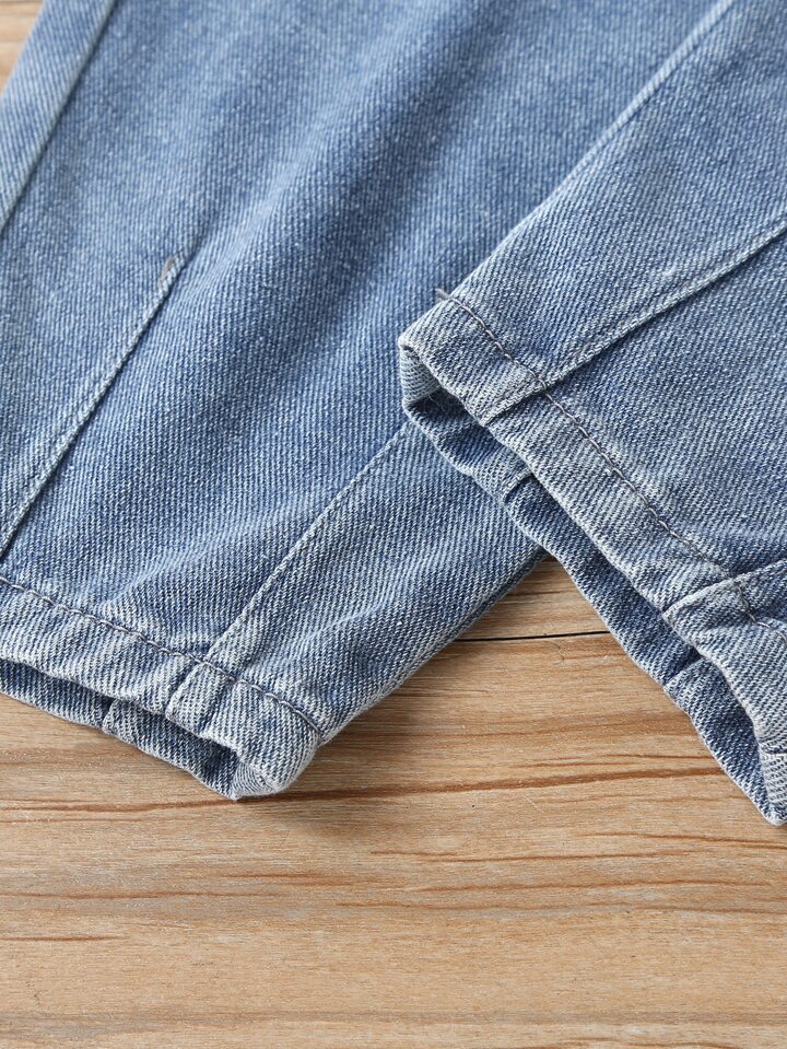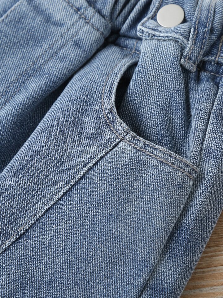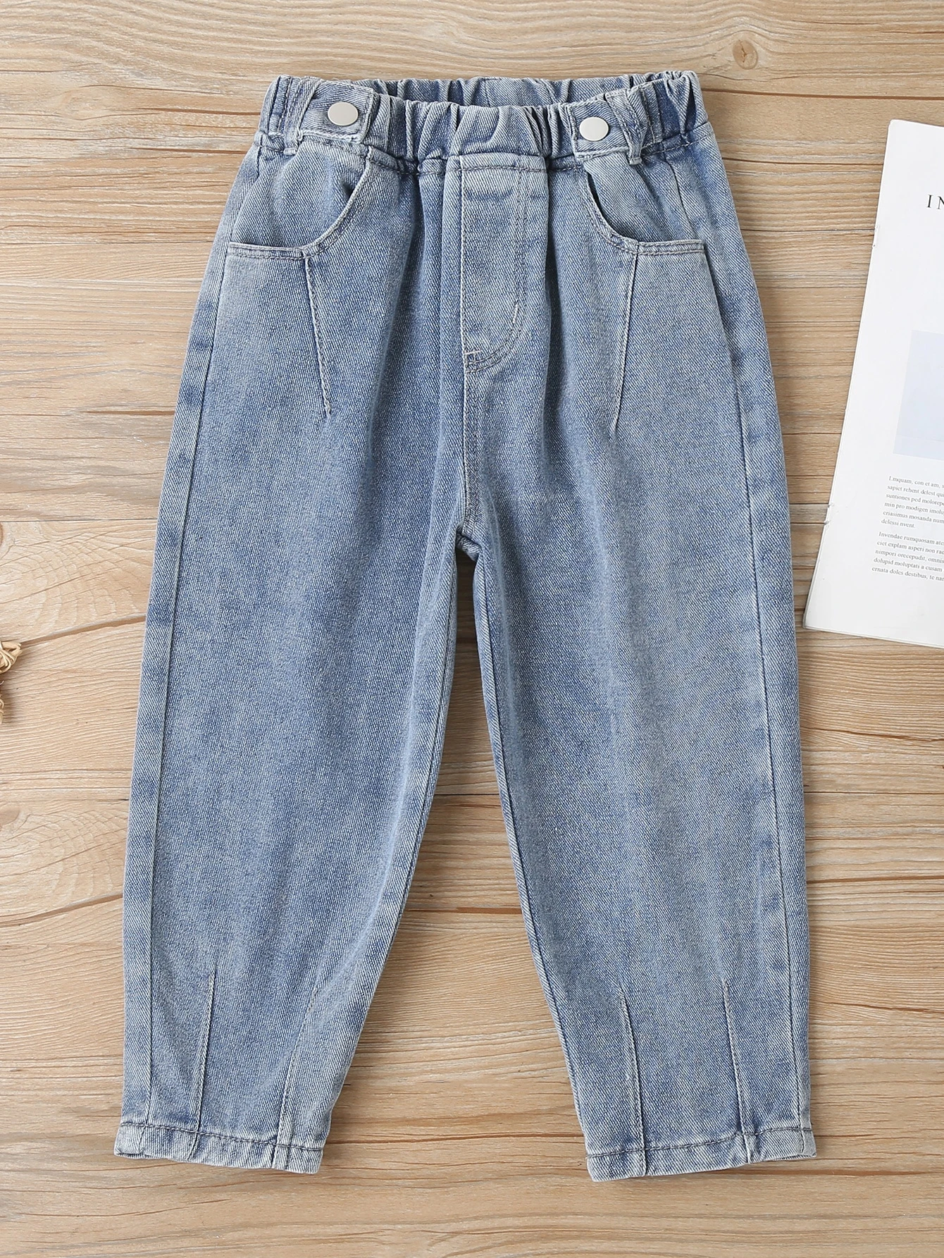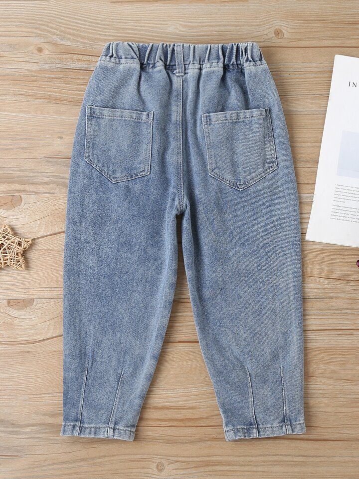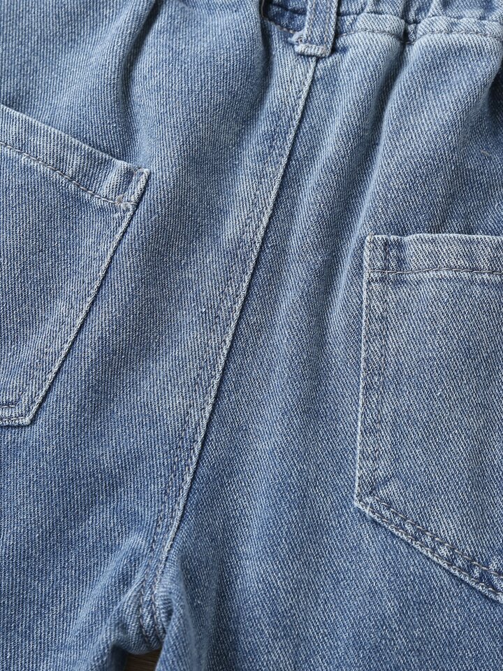 بنطلون جينز بخصر مطاطي بلون موحد للبنات الصغار