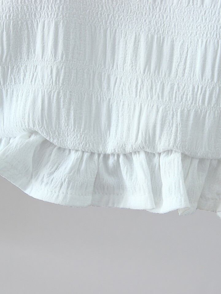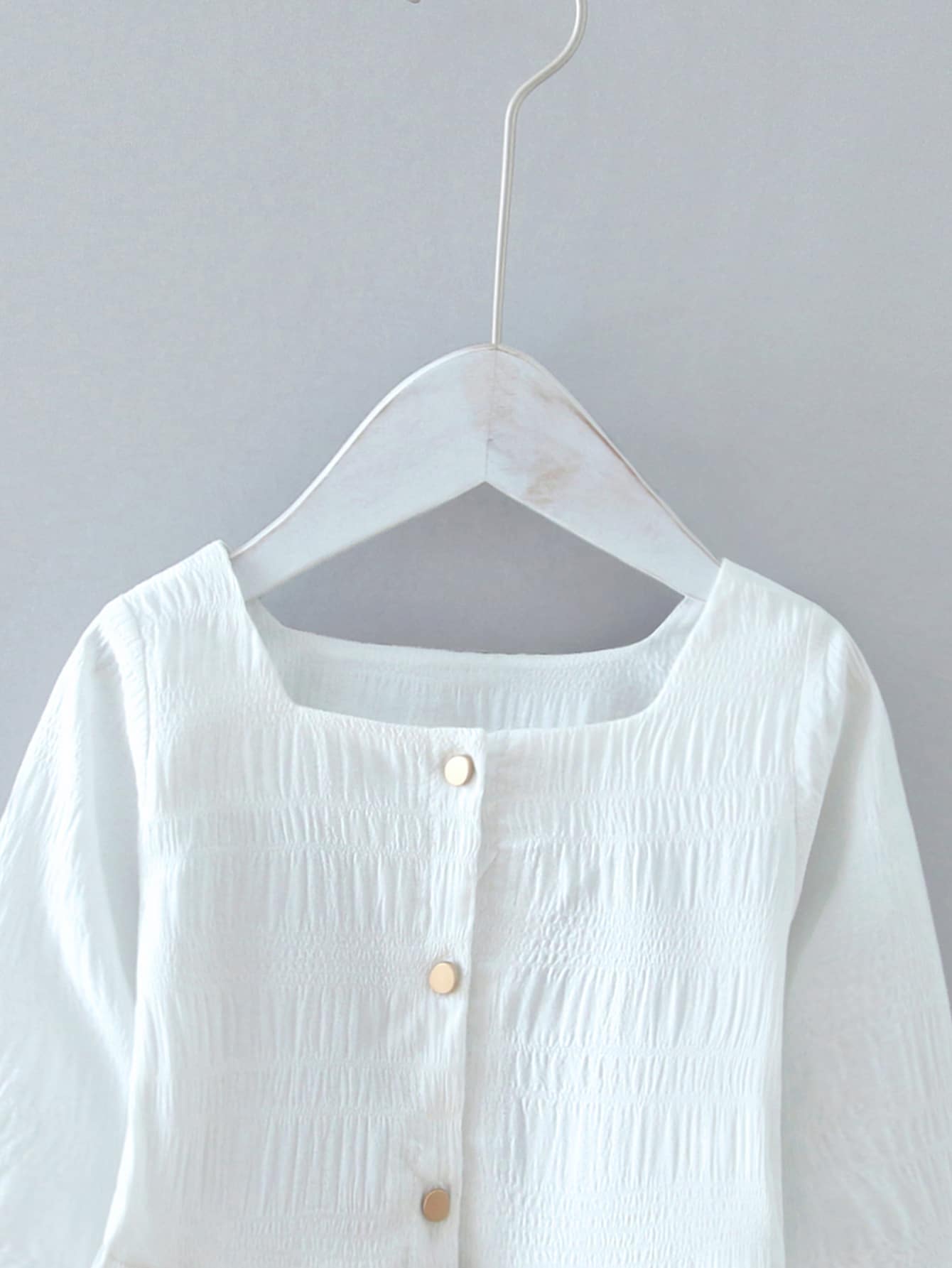 بلوزة بازرار وبحافة مكشكشة بلون موحد للبنات الصغار