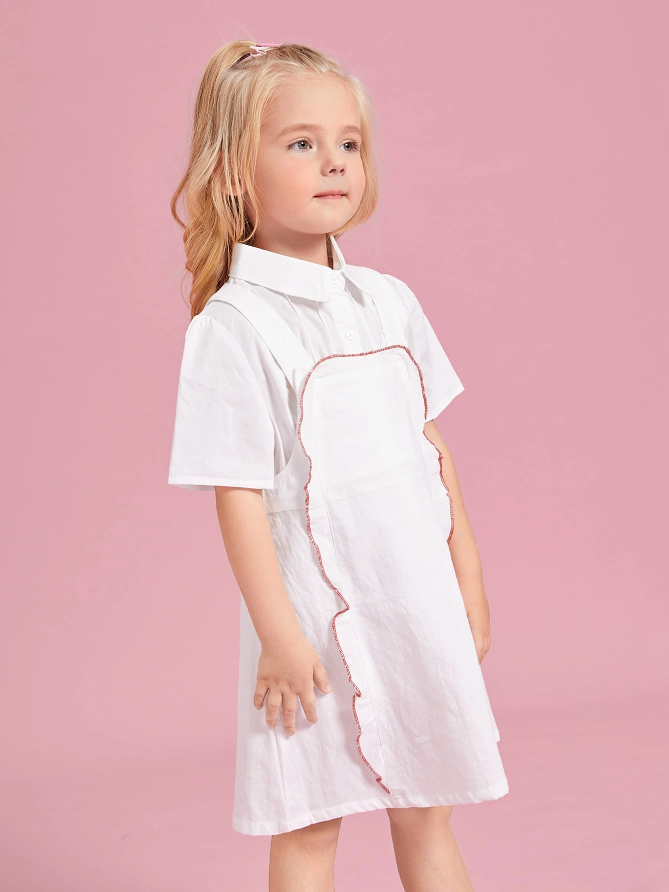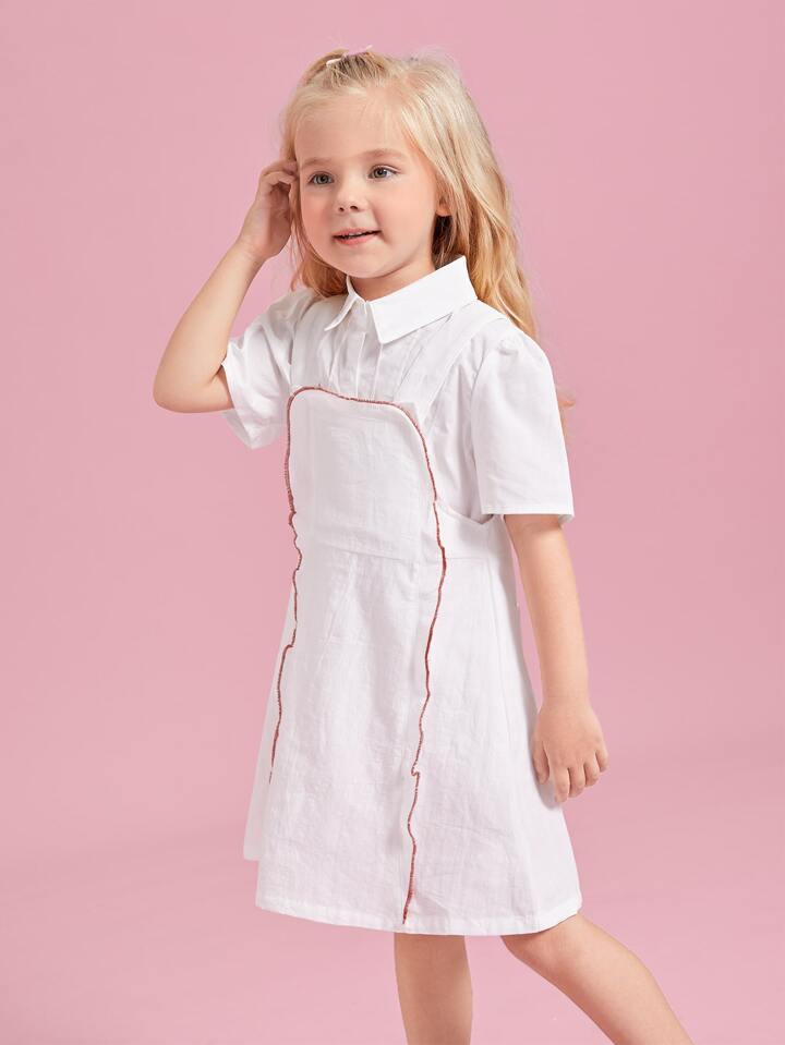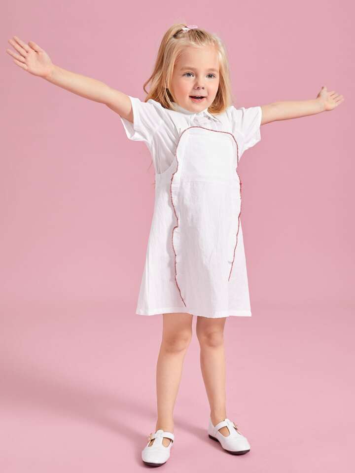 للبنات الصغار فستان بحمالات مقلم بغرز