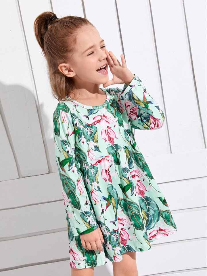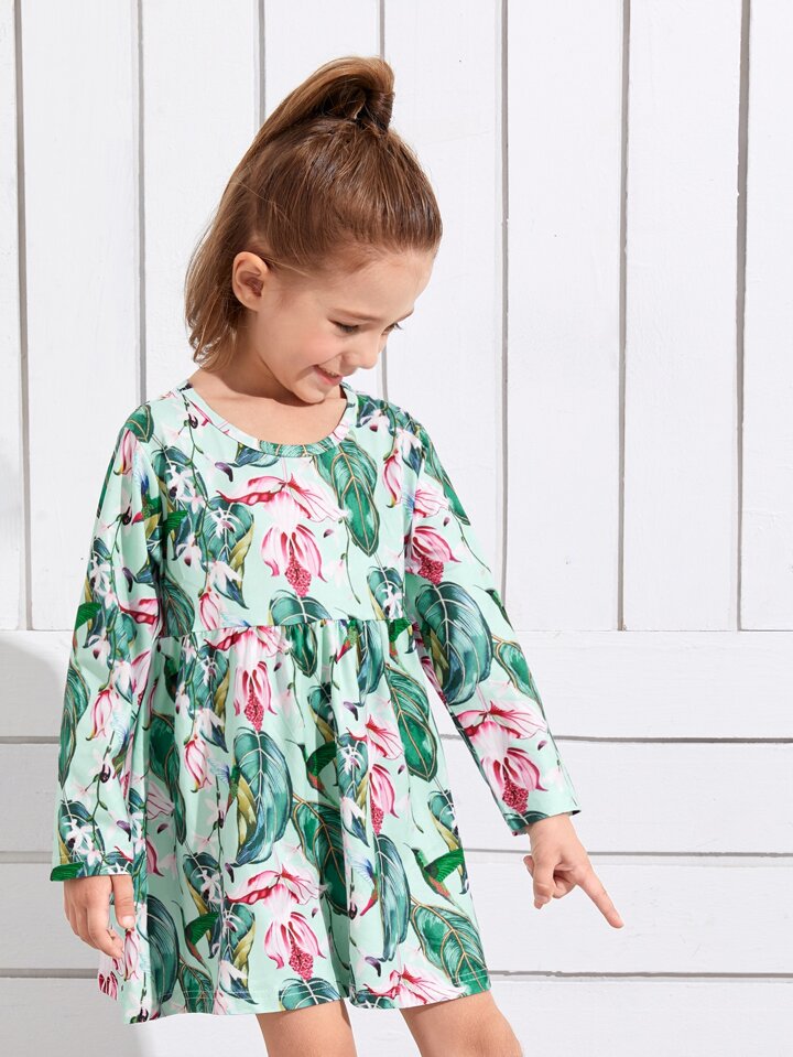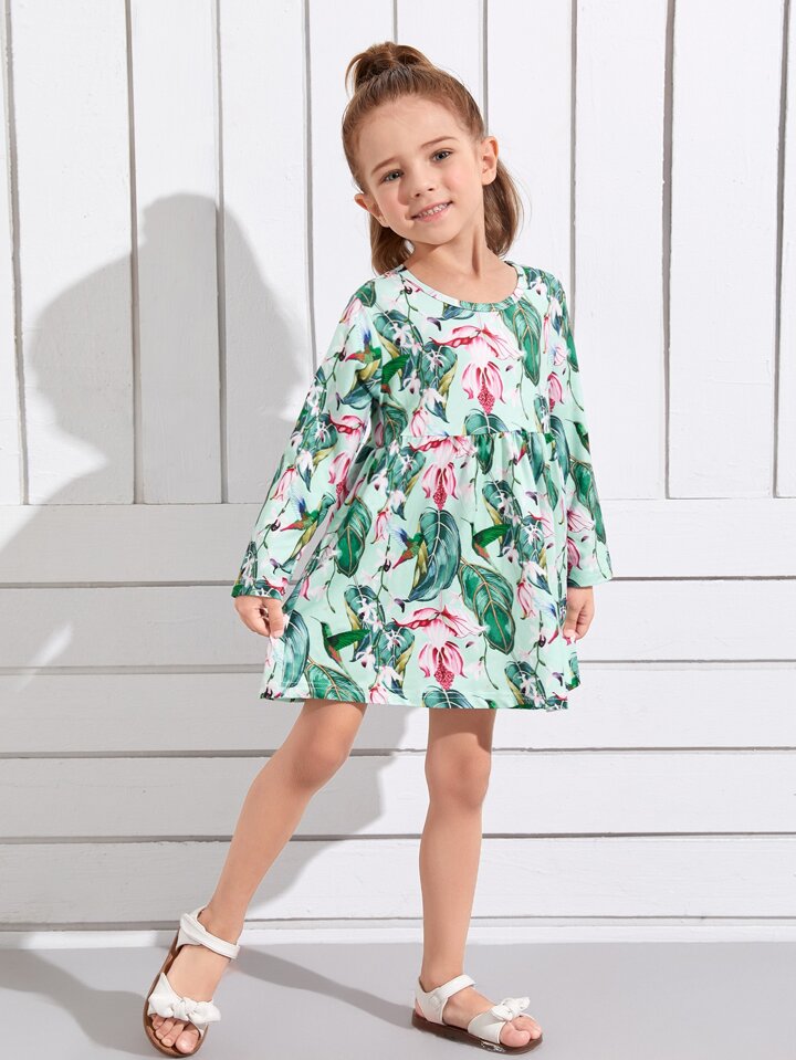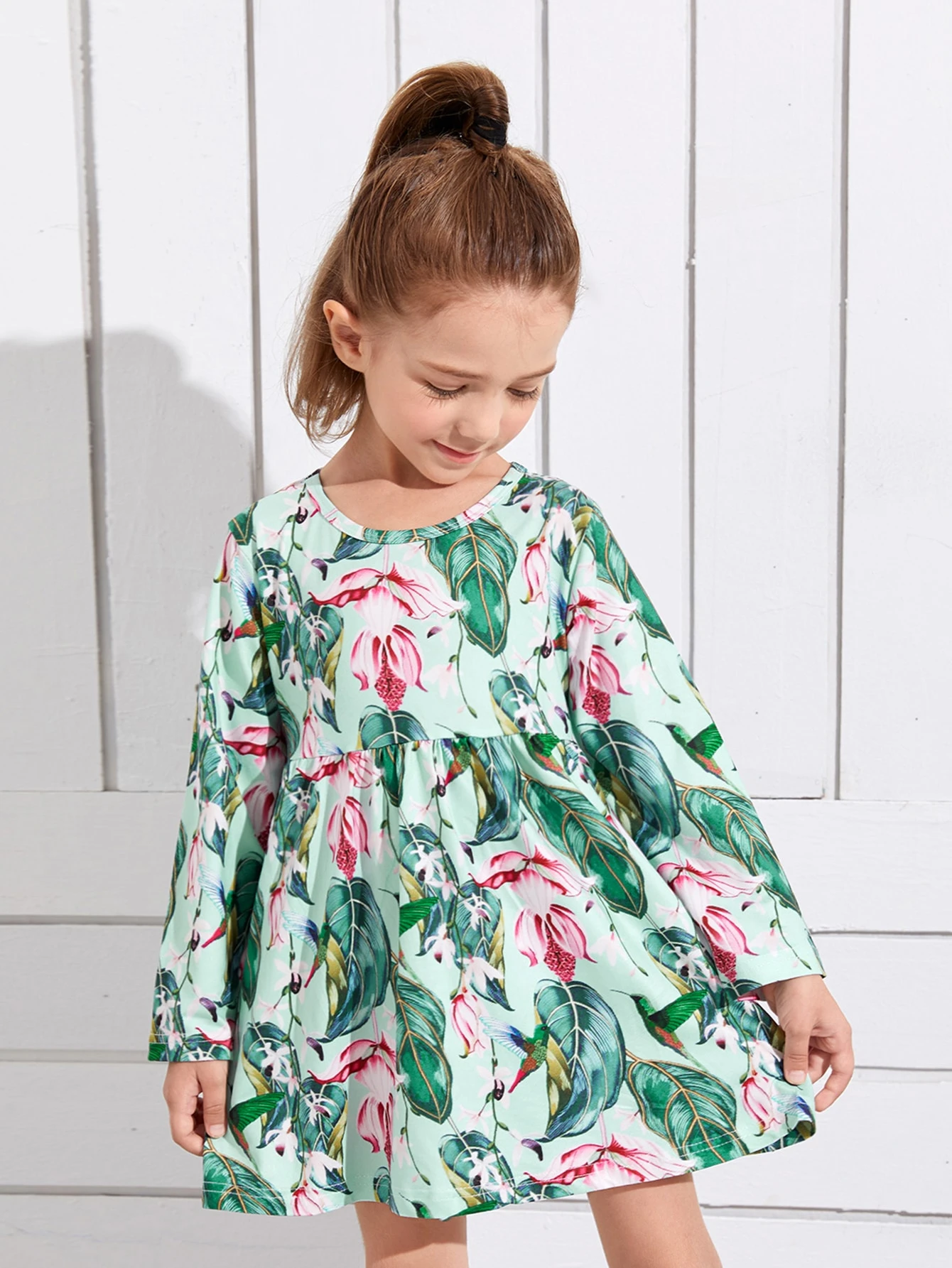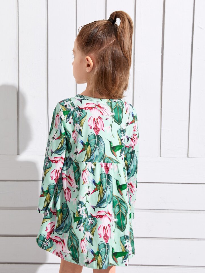 فستان بيبيدول بطباعة استوائية للبنات الصغار