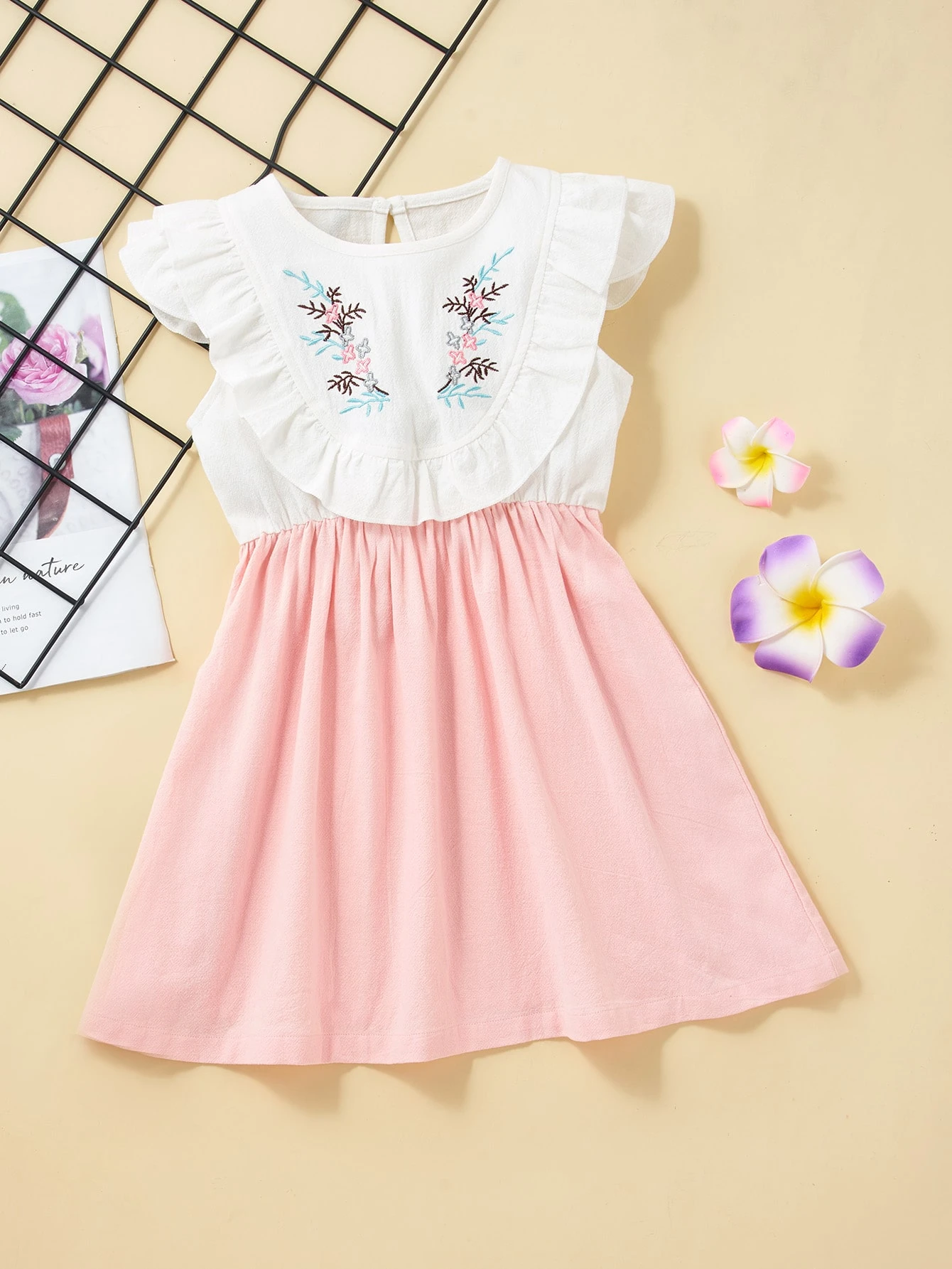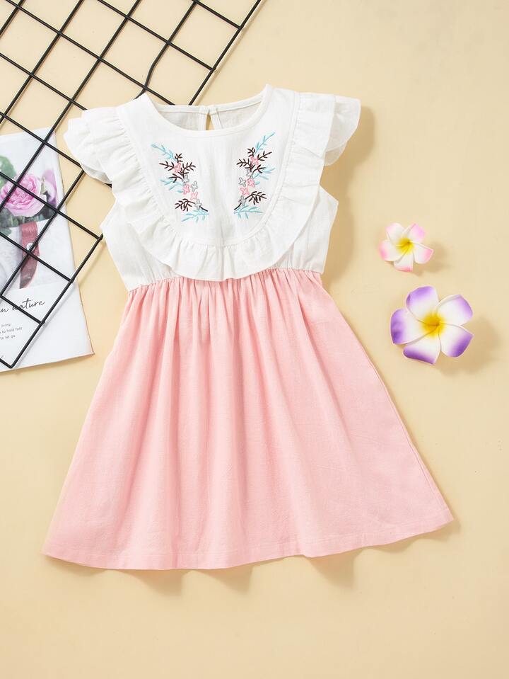 فساتين طفلة صغيرة التطريز الدانتيل منتفض حاجز اللون رسم الزهر لطيفة