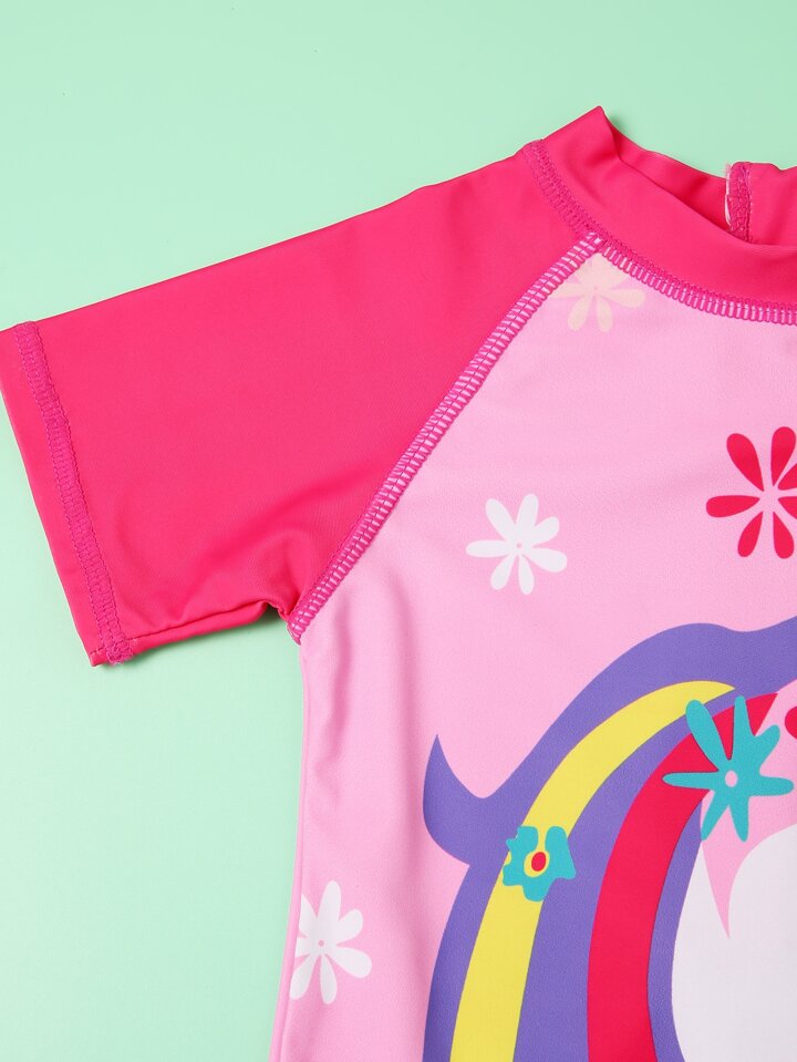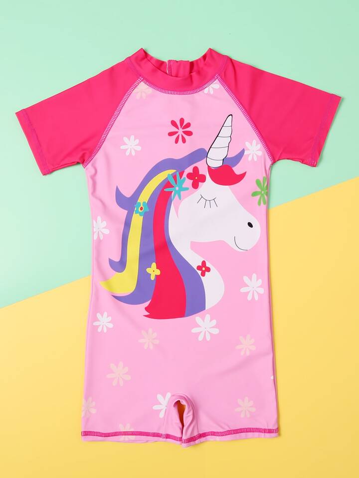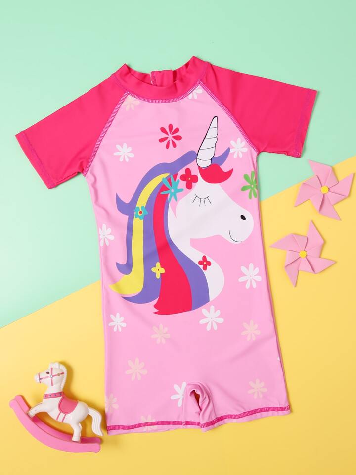 ملابس سباحة قطعة واحدة بطباعة وحيد القرن للبنات الصغار