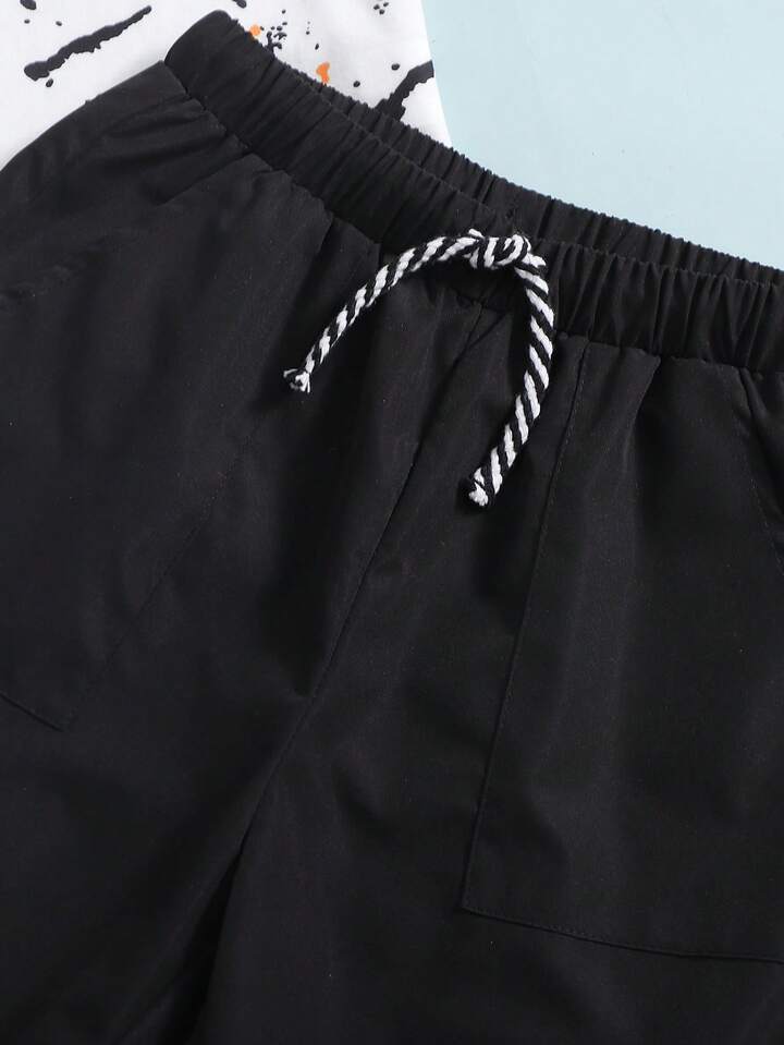 طقم لباس علوي و شورت لفتيان التوين برسومات بقع الحبر
