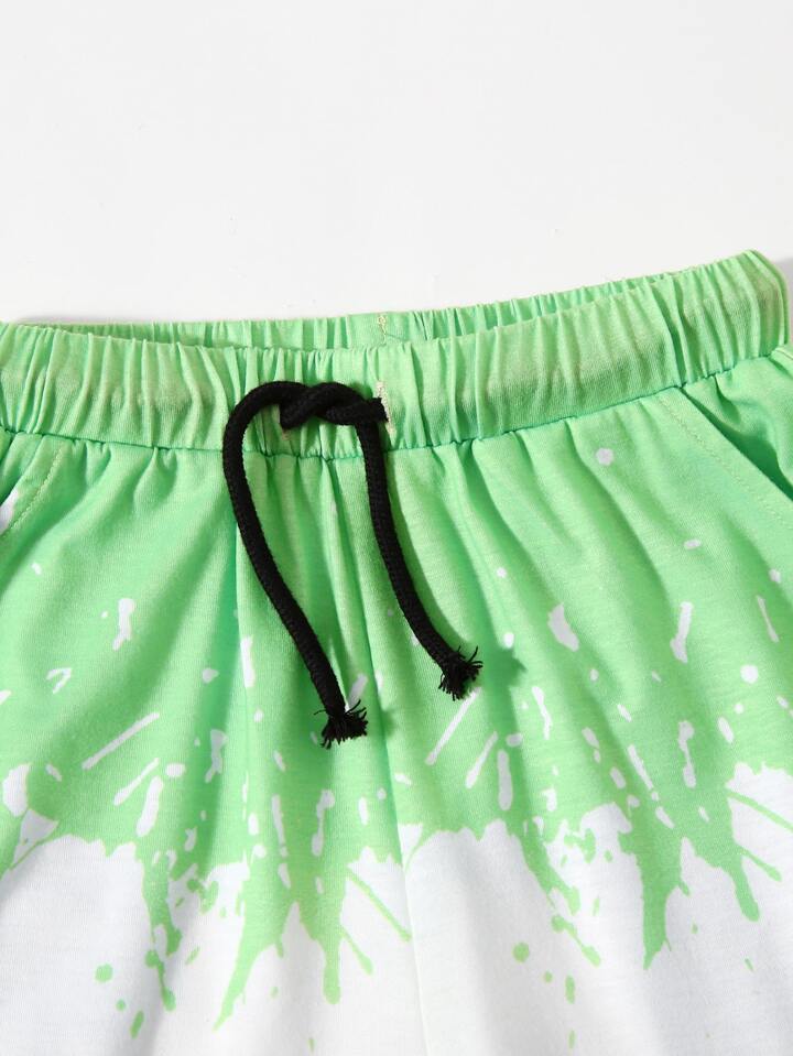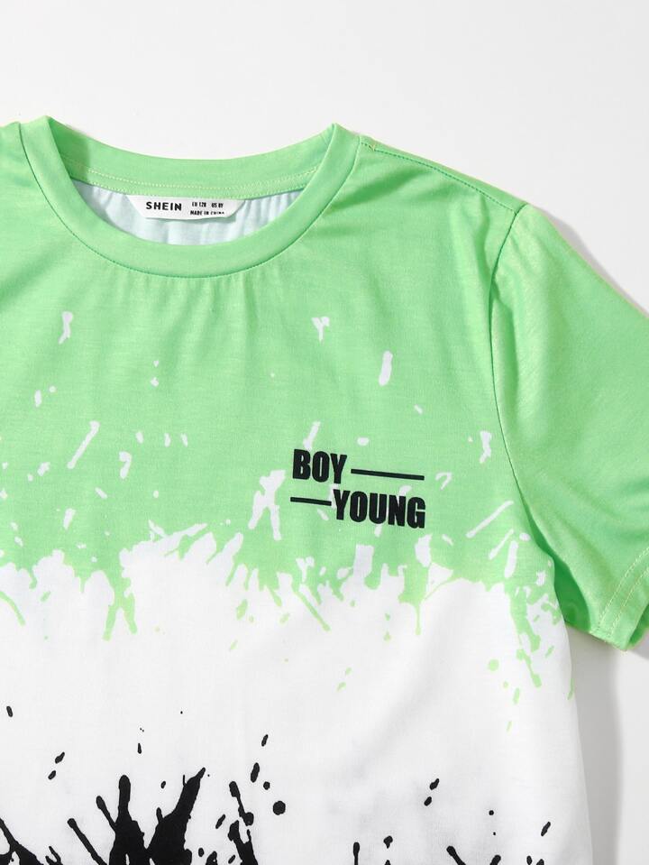 مجموعة تي شيرت و شورت صبي في سنّ المراهقة مع رسوم بالحروف وتداخل الألوان