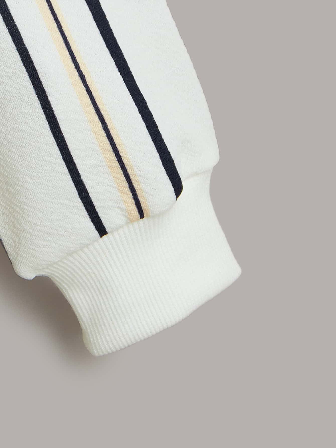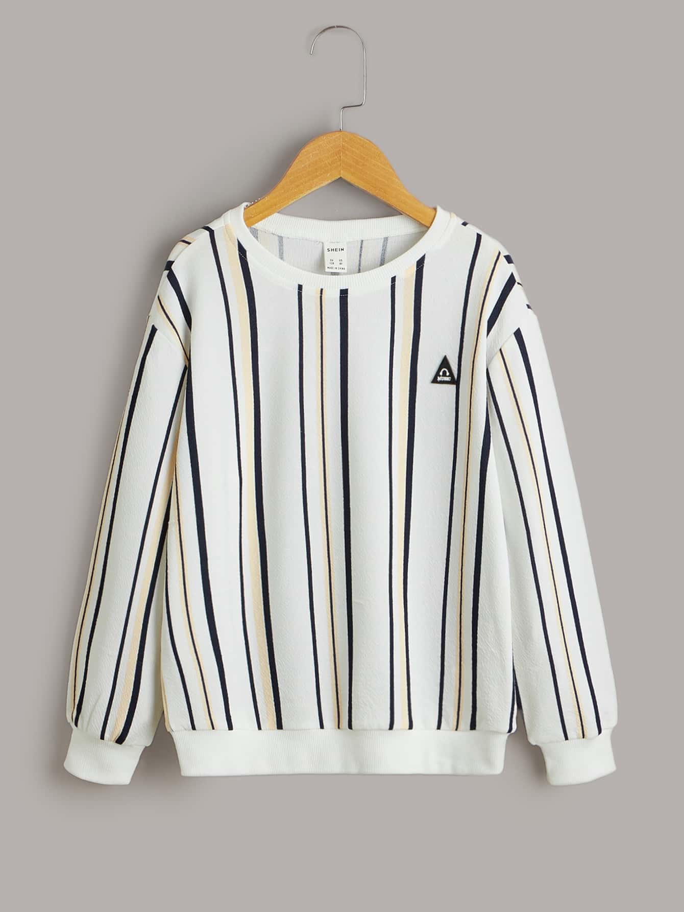 قميص البلوفر للفتى في المراحل العمرية بين الطفولة والبلوغ مع طبعة خطابية وشارة على الملابس