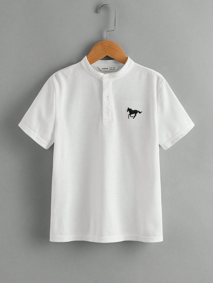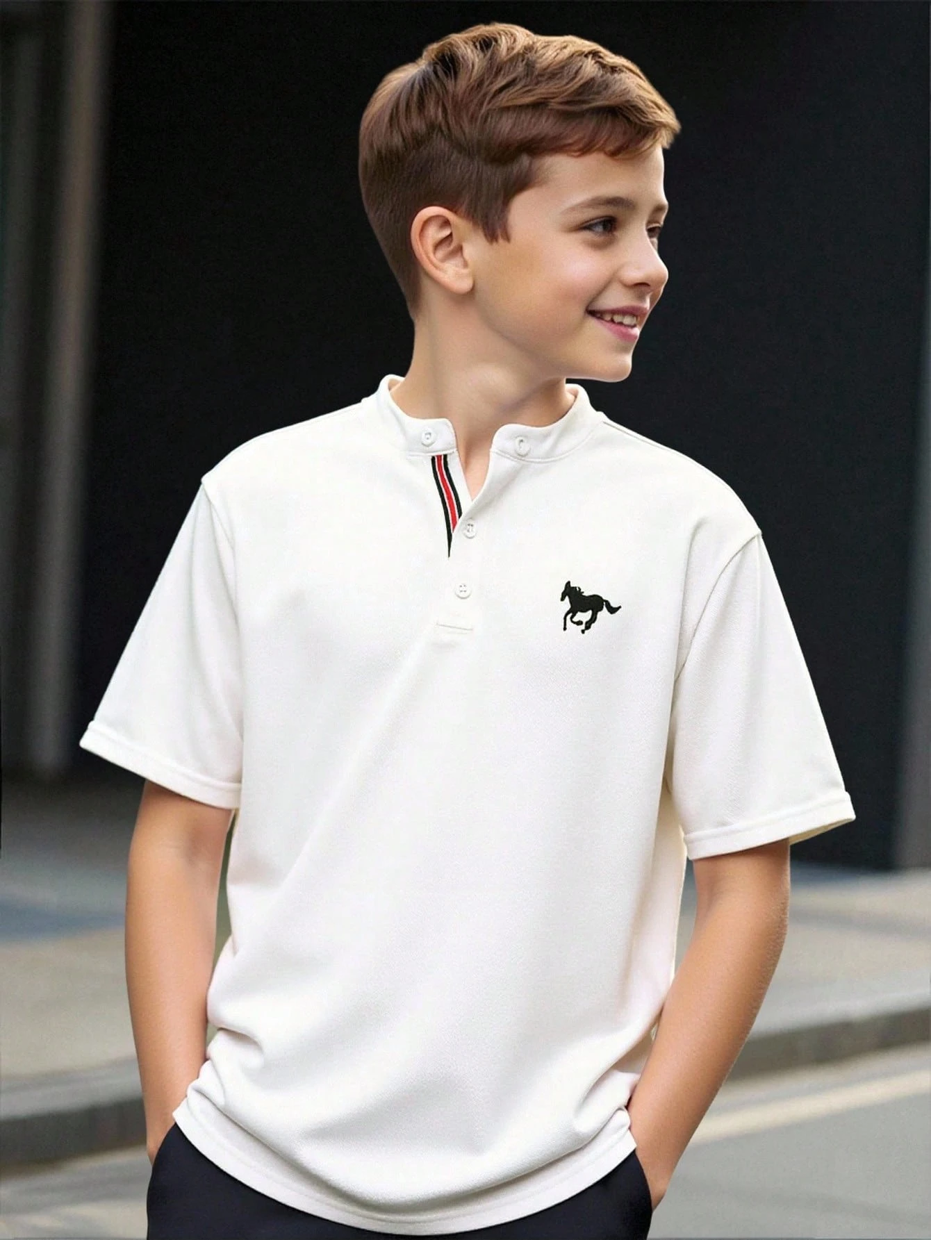 قميص بولو قصير الأكمام بطبعة حصان مطرزة بياقة عالية للأولاد المراهقين بطراز كلاسيكي صيفي
