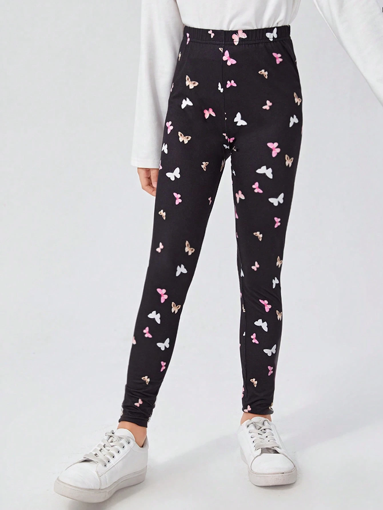 سروال ضيق مطبوع بالفراشات مناسب للفتيات المراهقات، متعدد الاستخدامات، مناسب لجميع المواسم، للرياضة اليوغا