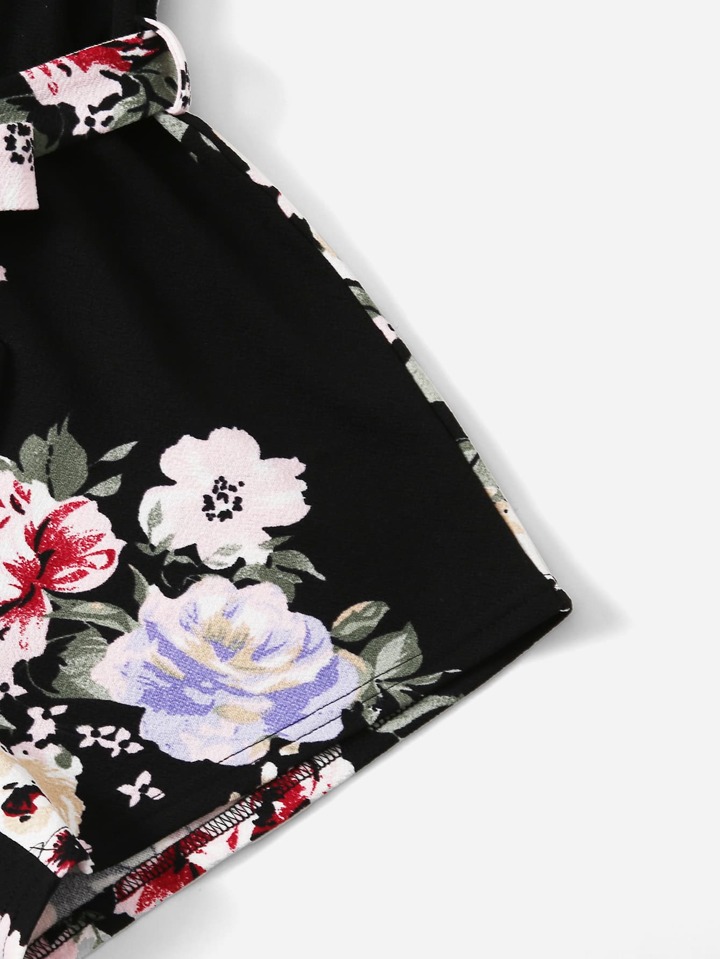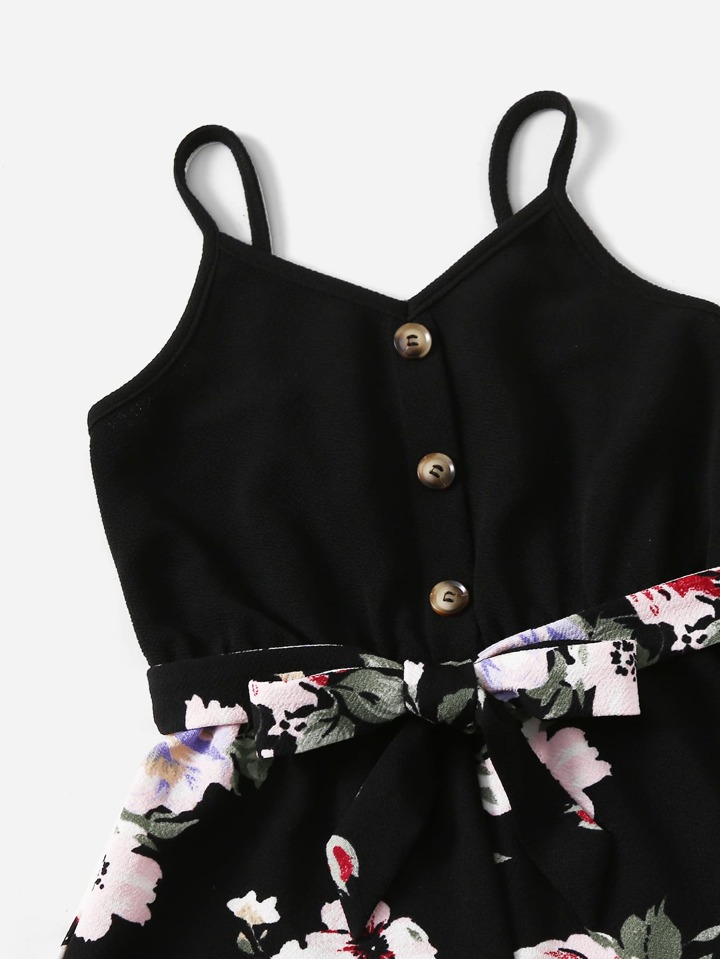 بدلة قصيرة بحمالات وزهور وأزرار لفتاة مراهقة