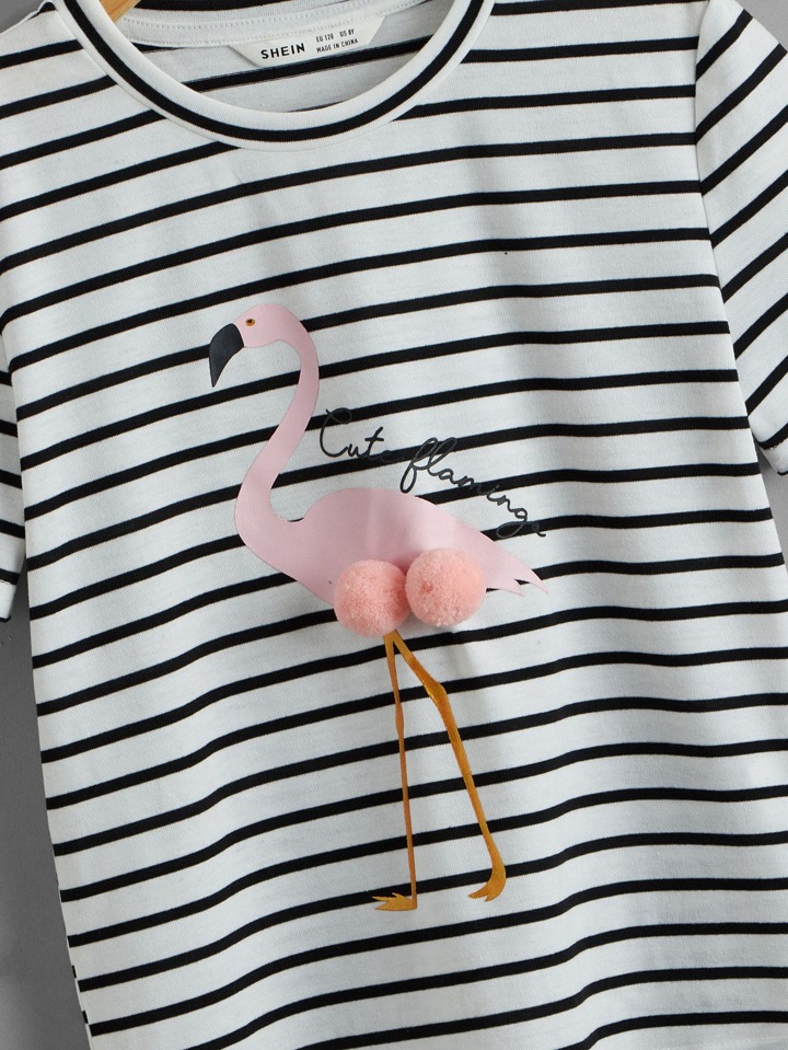 تي شيرت مخطط بطباعة فليمنجو للبنات