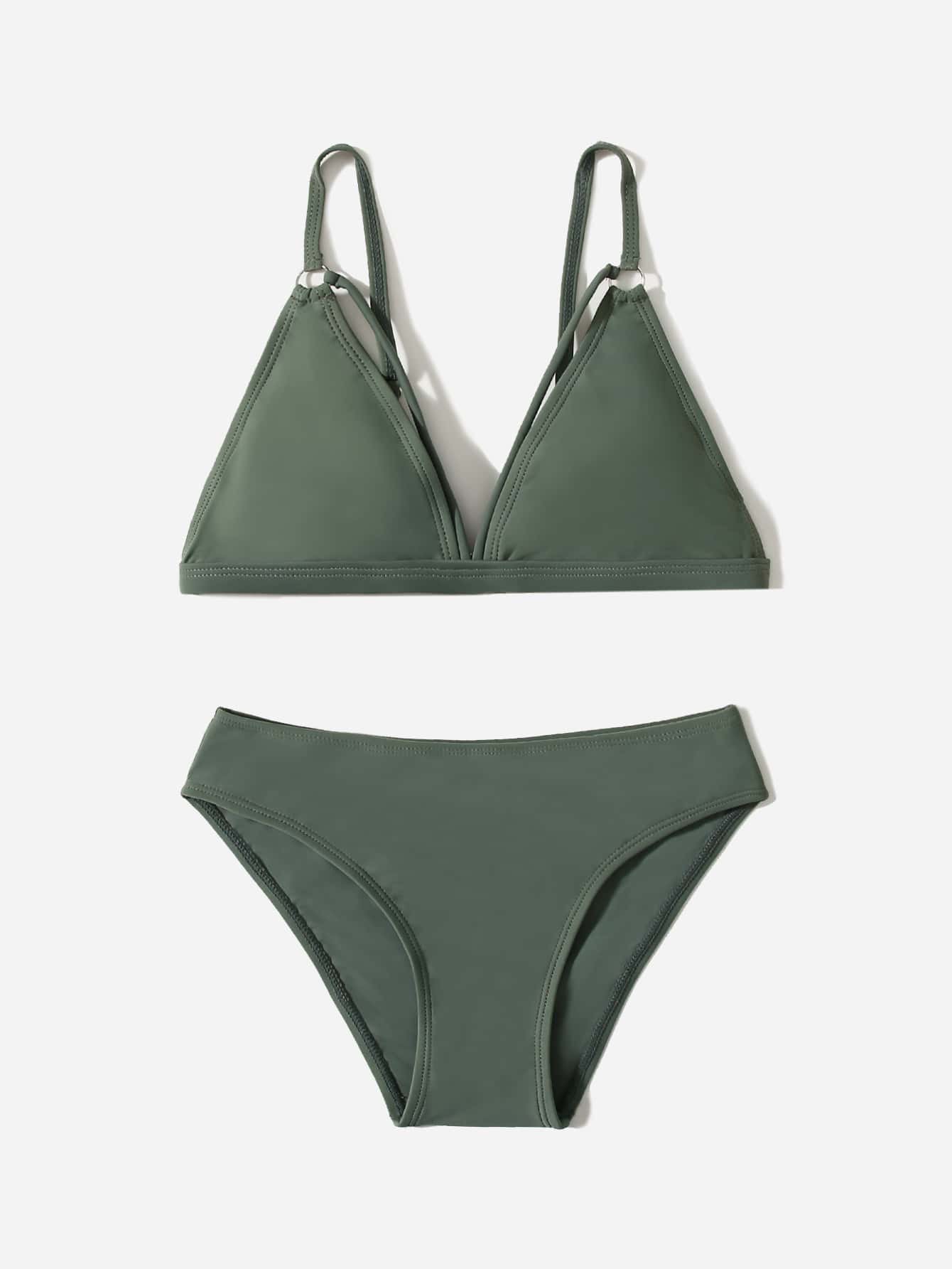 طقم بيكيني مثلث ذو أربطة لفتيات المرحلة المتوسطة، الصيف على الشاطئ