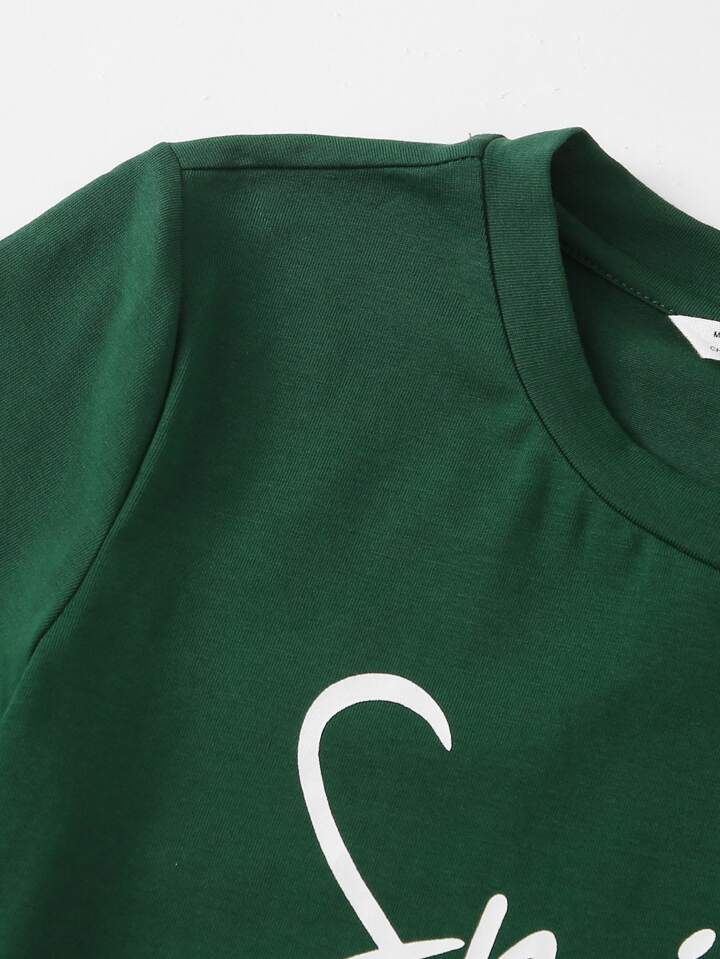 تي شيرت بأكمام ملفوف بطباعة قلب وعبارة للبنات