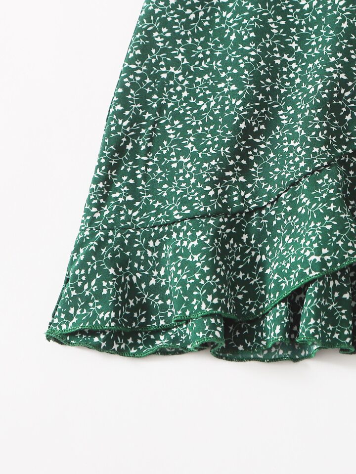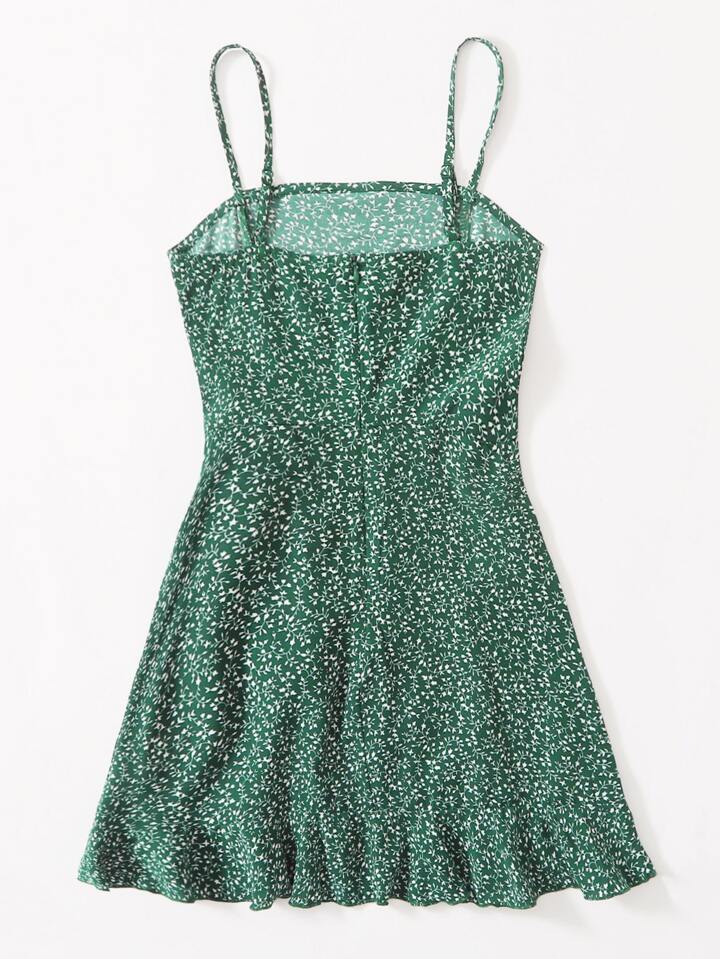 فتاة مراهقة - فستان بحمالة وربطة عند الجانب بنقوش نباتية وحافة مكشكشة