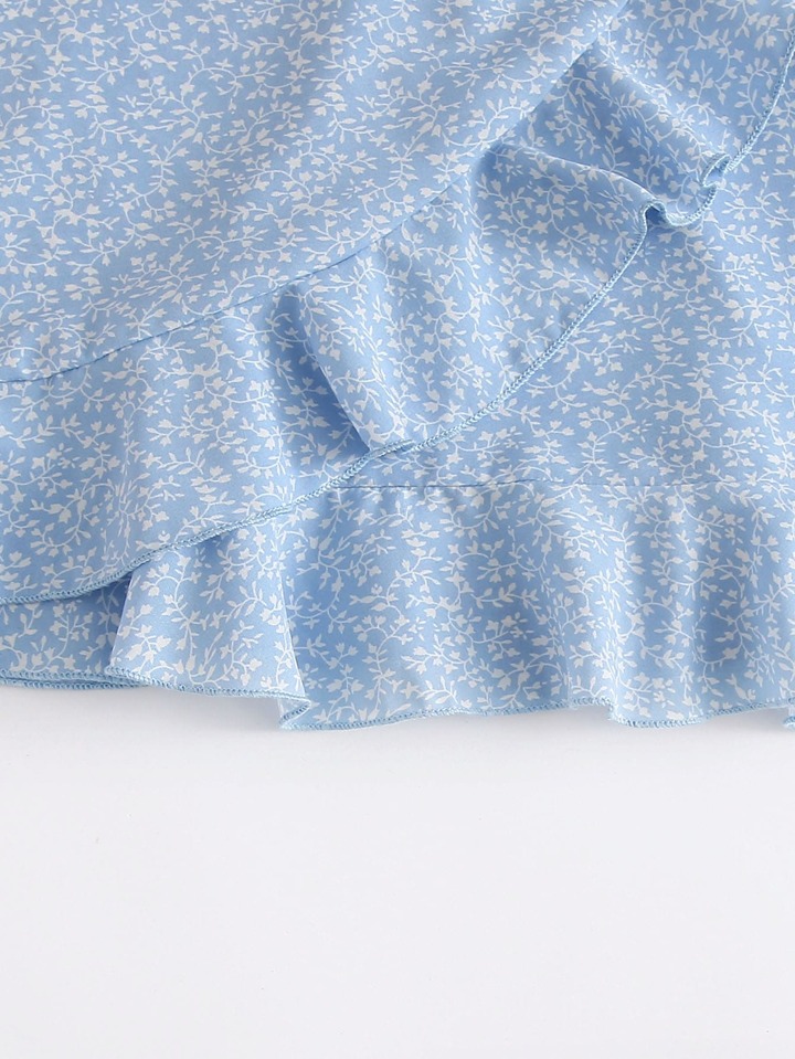 فتاة المراهقة فستان طوق روبل يربط عند الجانب بنمط نباتي