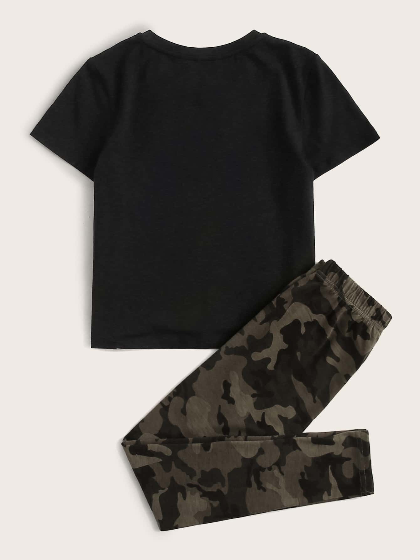 قميص تي بطبعة شعار للفتاة المراهقة مع طقم جوارب بطبعة كامو