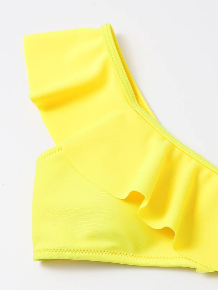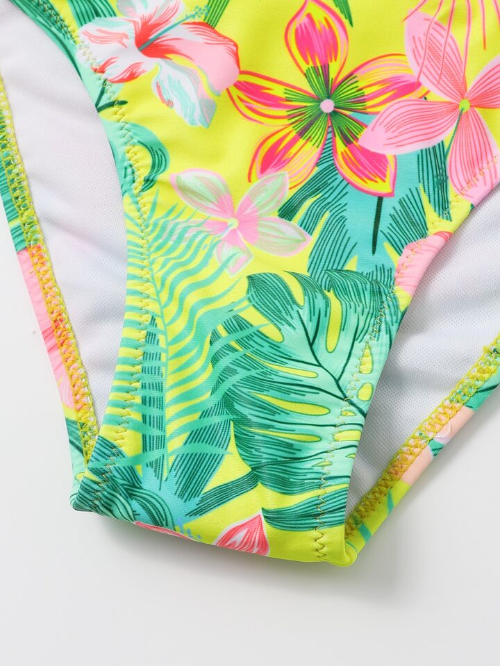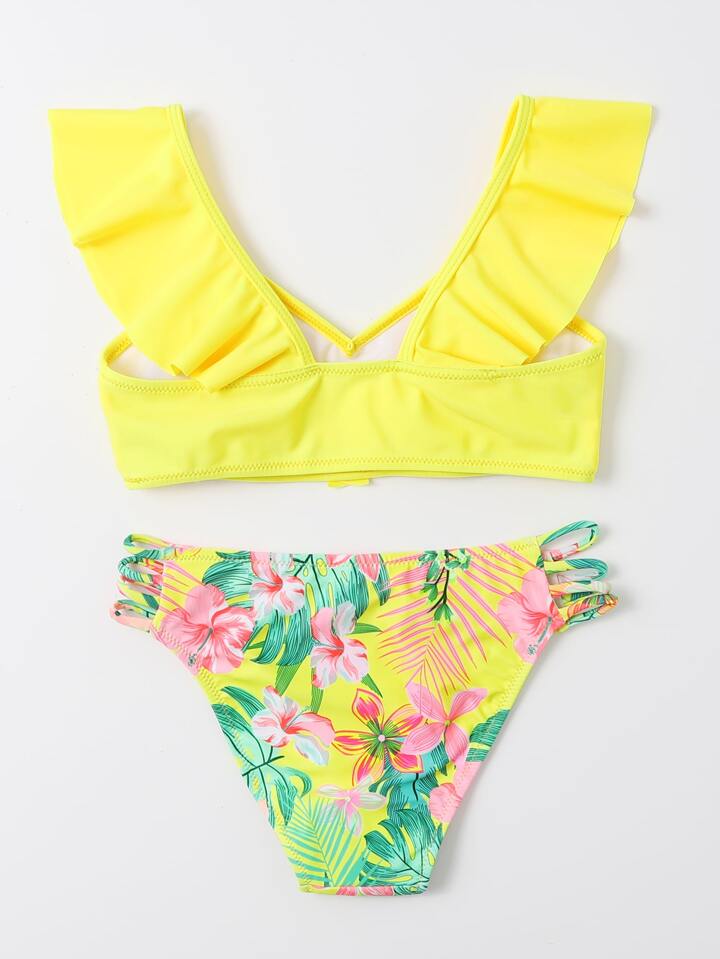 طقم بكيني بطبعة استوائية بحافة كشكشة للفتاة المراهقة الصيف والشاطئ