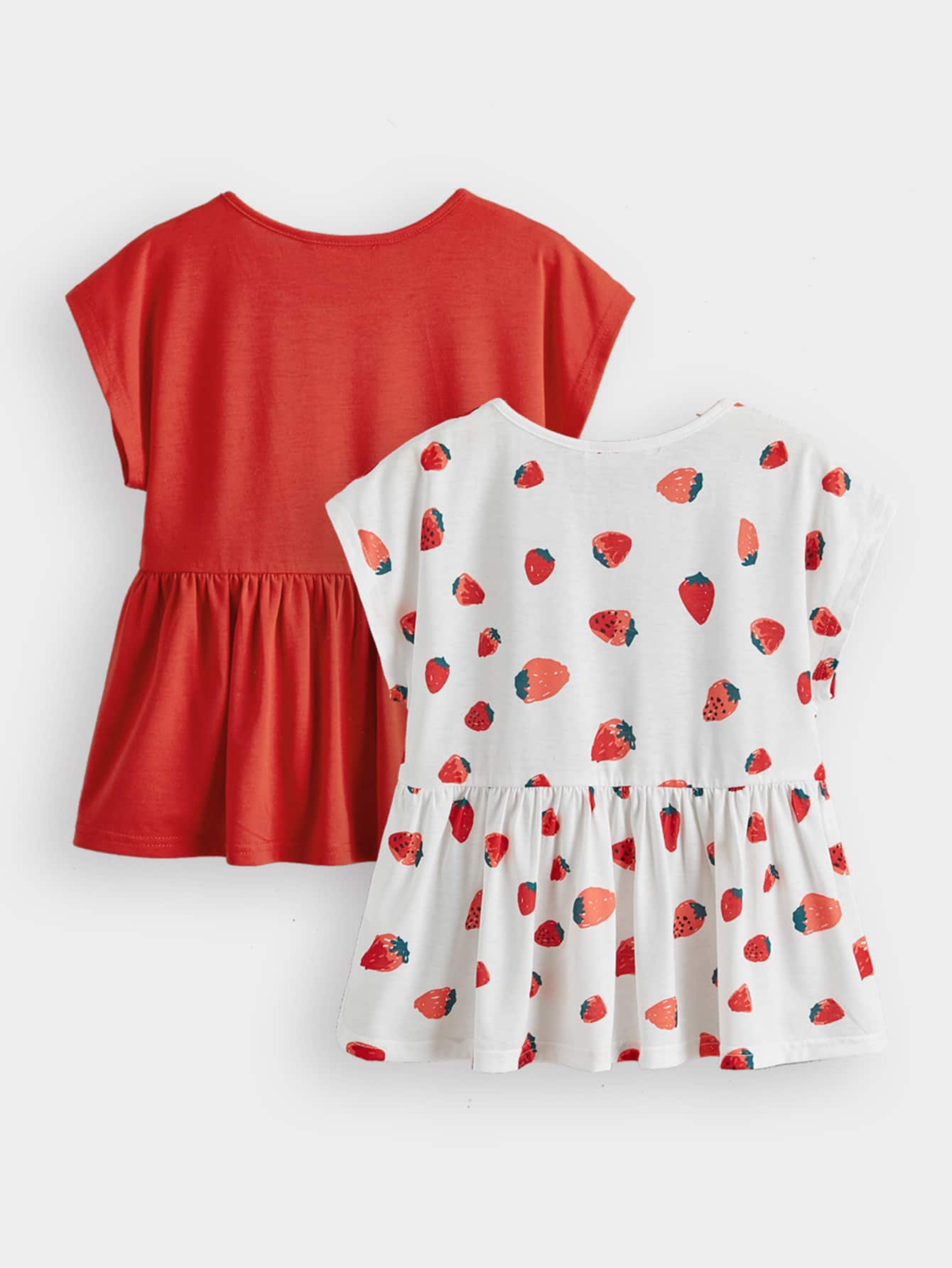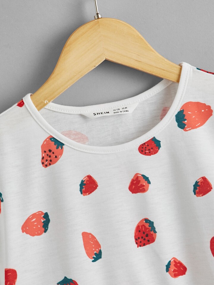 بلوزة مرنة صبيانية مطبوعة بطباعة الفراولة بتصميم كشكشة الأطراف عبوتين