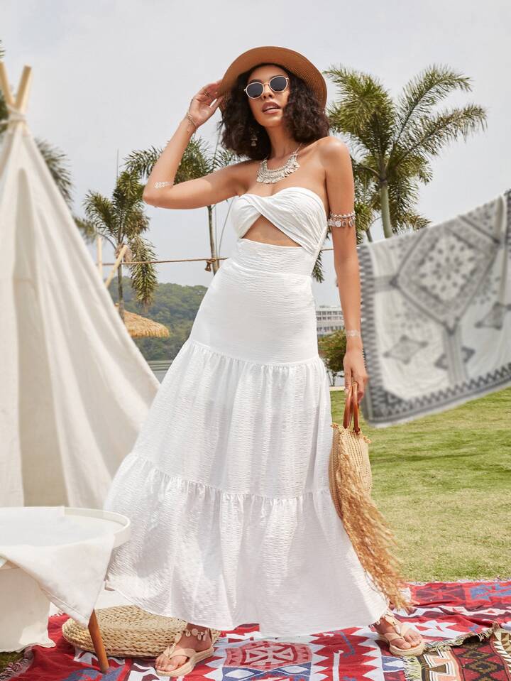 فستان انوب ملفوفة مقصوص امامي مدرز خلفي حافة مكشكشة