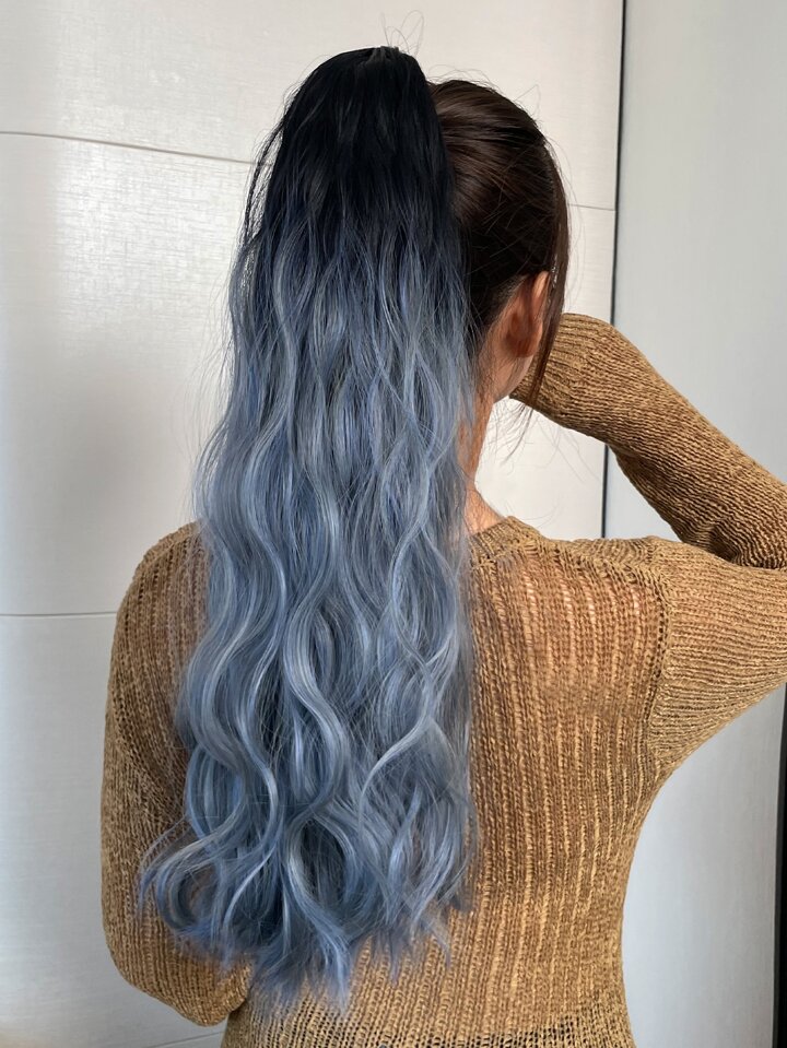 إطالة شعر نمط ذيل حصان مجعد طويل بلونين باروكة
