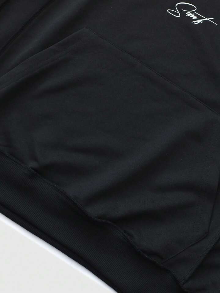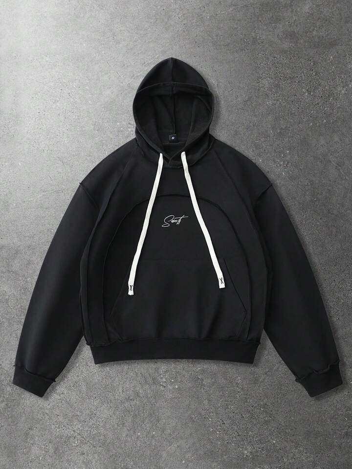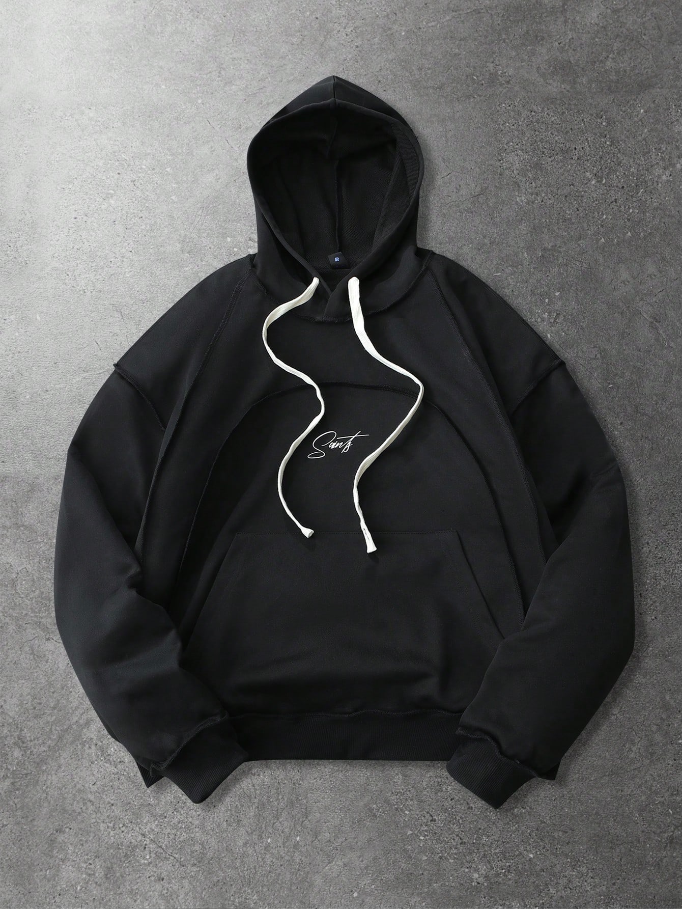 بلوزة هودي كاجوال يونيسكس، بطراز شارع أمريكي بتصميم رقعي مطبوع بالإنجليزية، مناسبة للخريف والشتاء