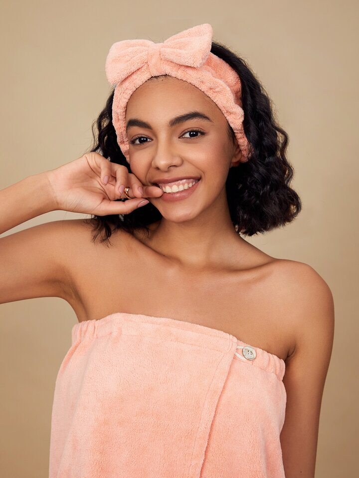 BASIC LIVING فيكونة عصابة راس وافل صوف مرجاني مكياج سباء الياف فائقة النعومة- Peach Blush