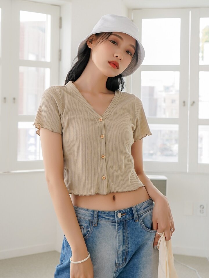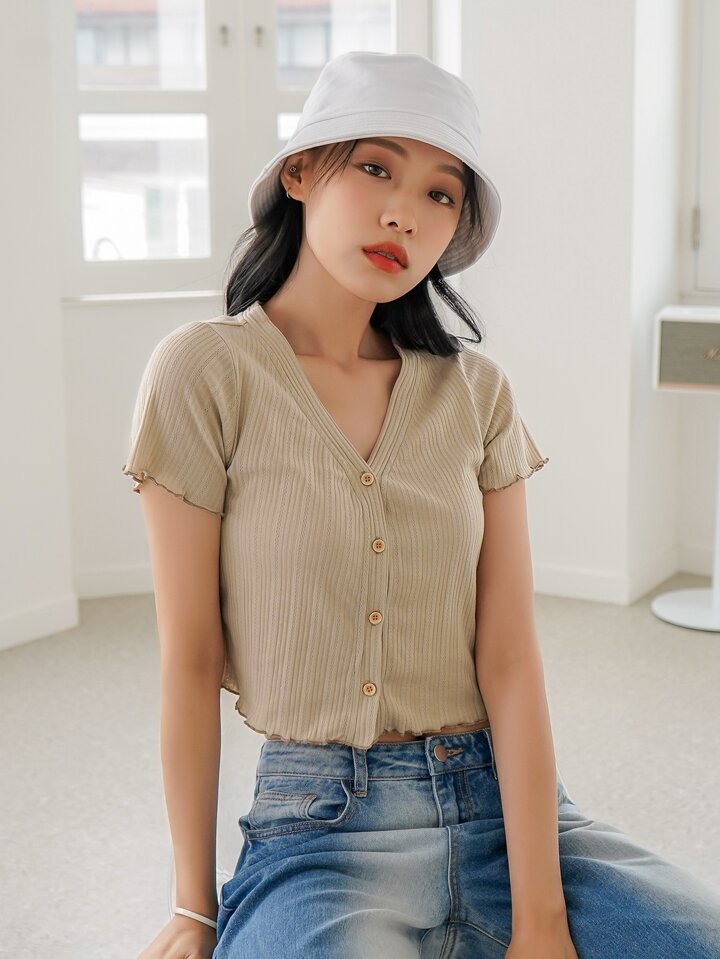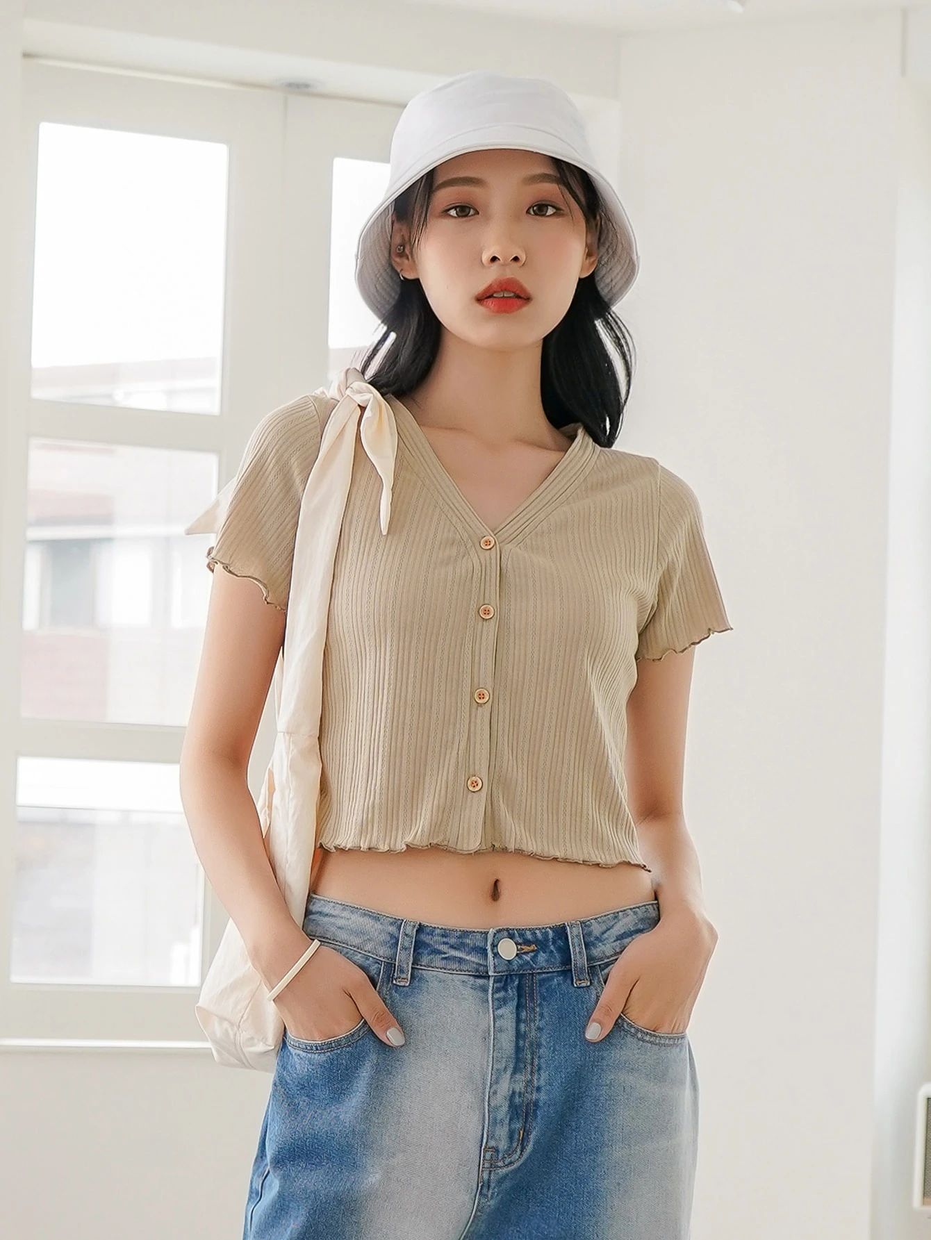 لباس علوي مقلم بنمط الخس بأزرار امامي بعنق V