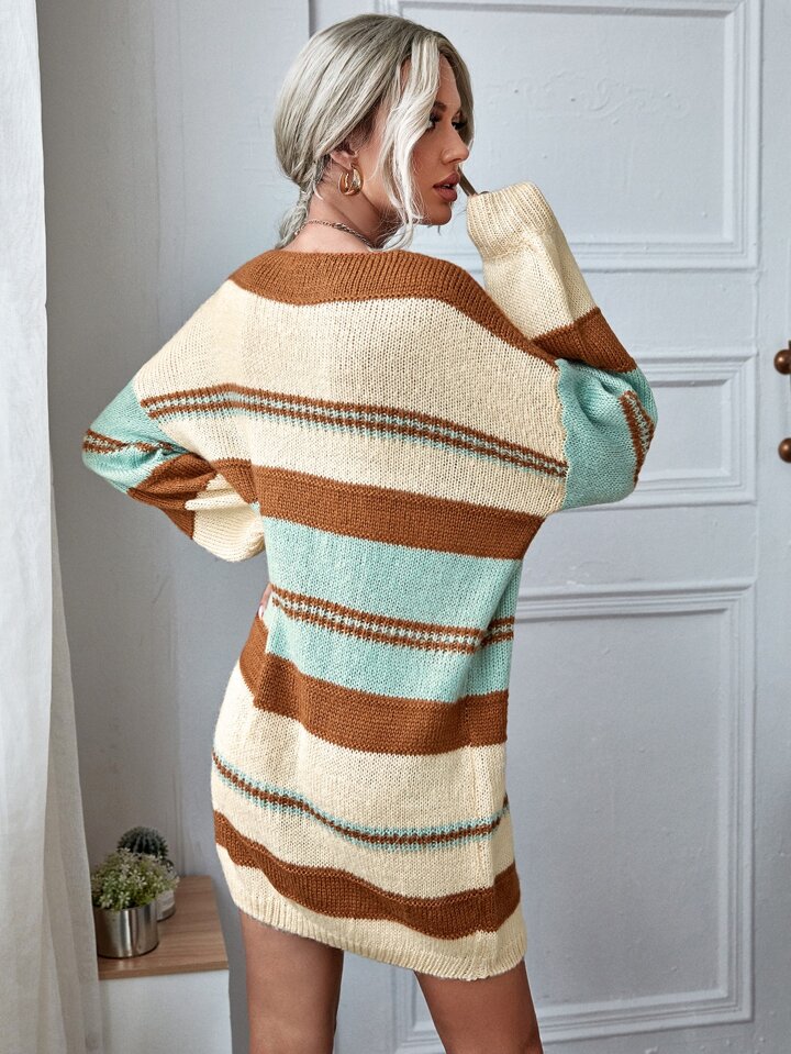 فستان سترة صوفي بألوان متجانس منخفض الاكتاف وبعنق V
