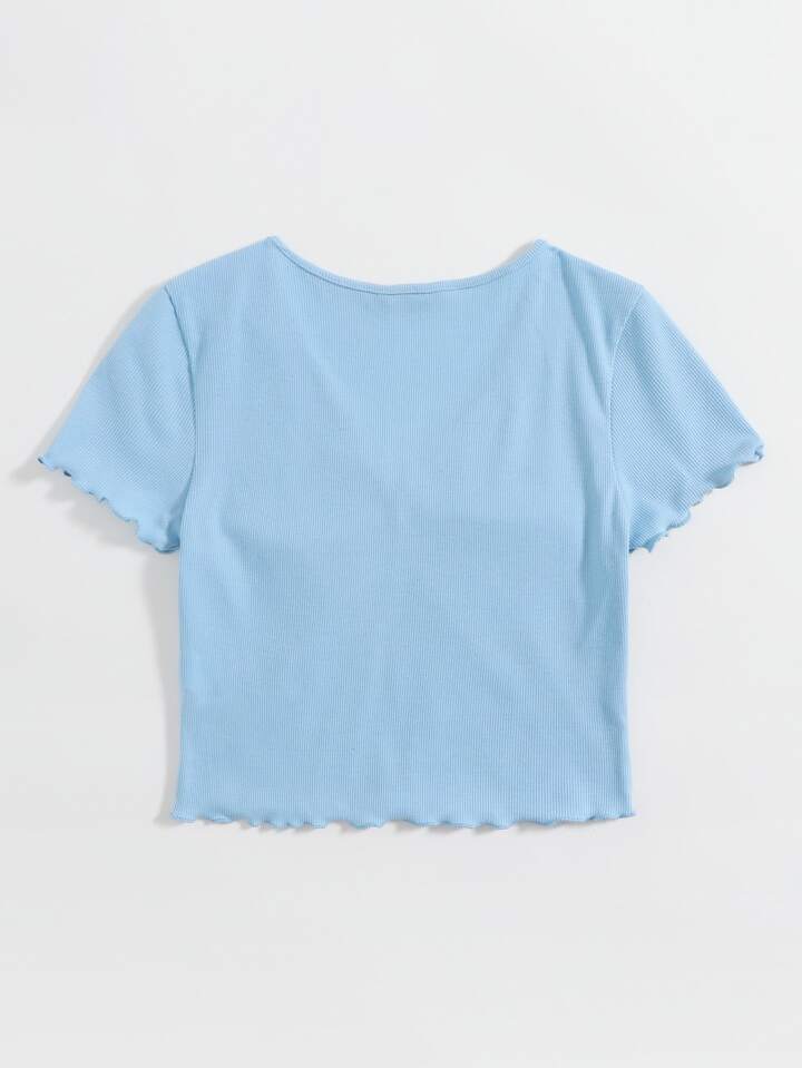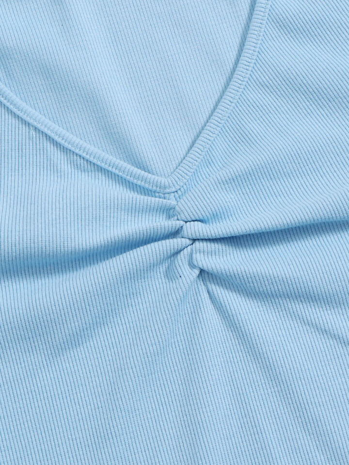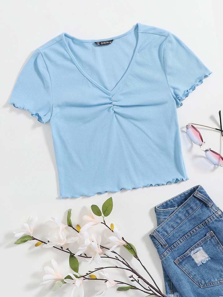 تي شيرت محبوك مضلع مقلم نمط الخس وبعنق V