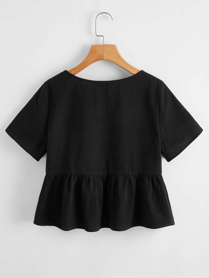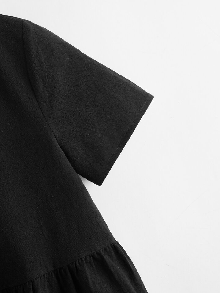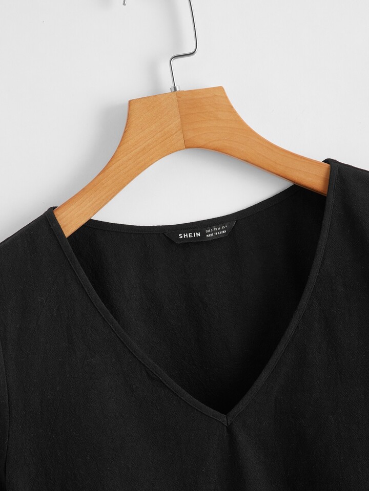 لباس علوي ذو ثنايا بلون موحد بعنق شكل V مقاس كبير
