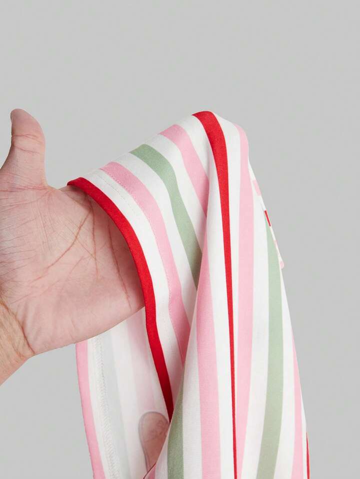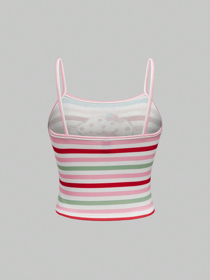 توب كامي مشرب مطبوع بطباعة شريطية وشخصية كرتون أمريكية عتيقة، صيفي