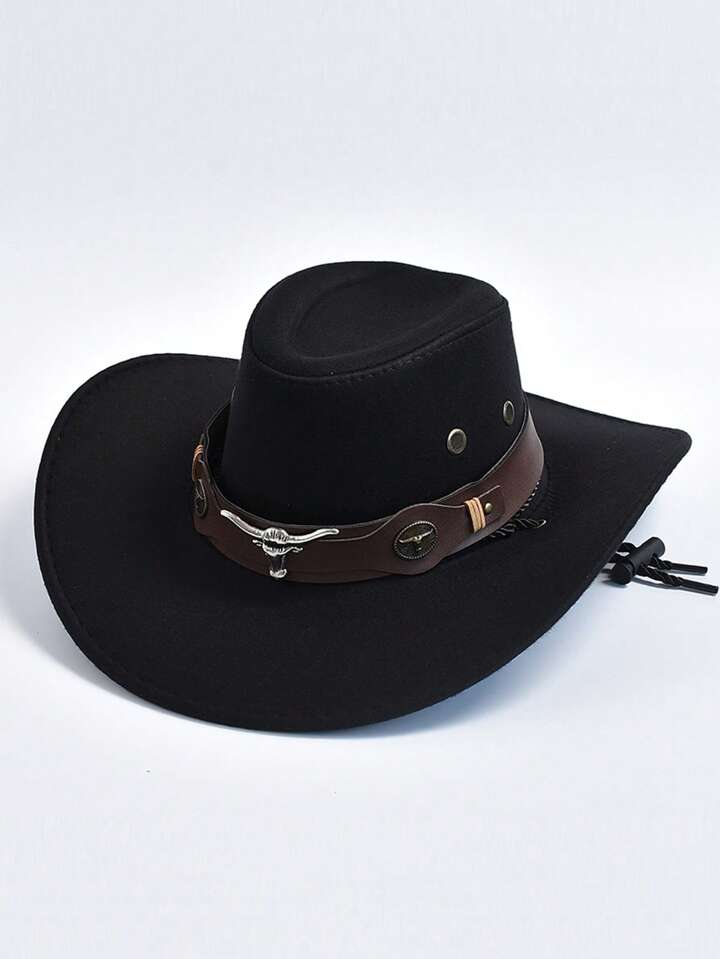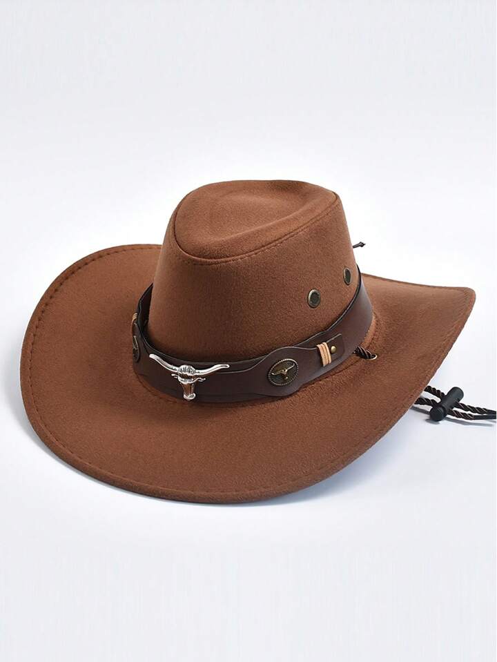 قبعة كاوبوي غربية للنساء والرجال مزينة برأس بقرة ،قبعة الجاز والبوهيمية