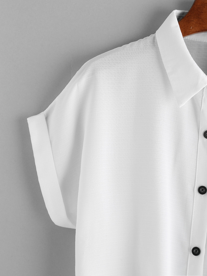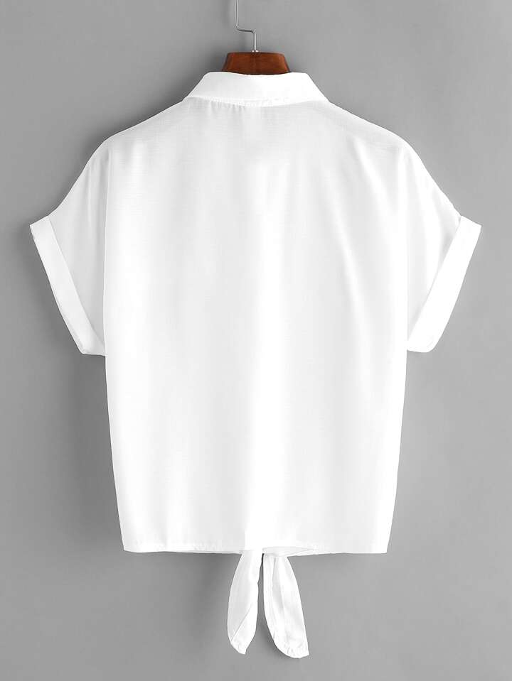 بلوزة شيفون بيضاء بقصة أمامية ضيقة مع جيوب