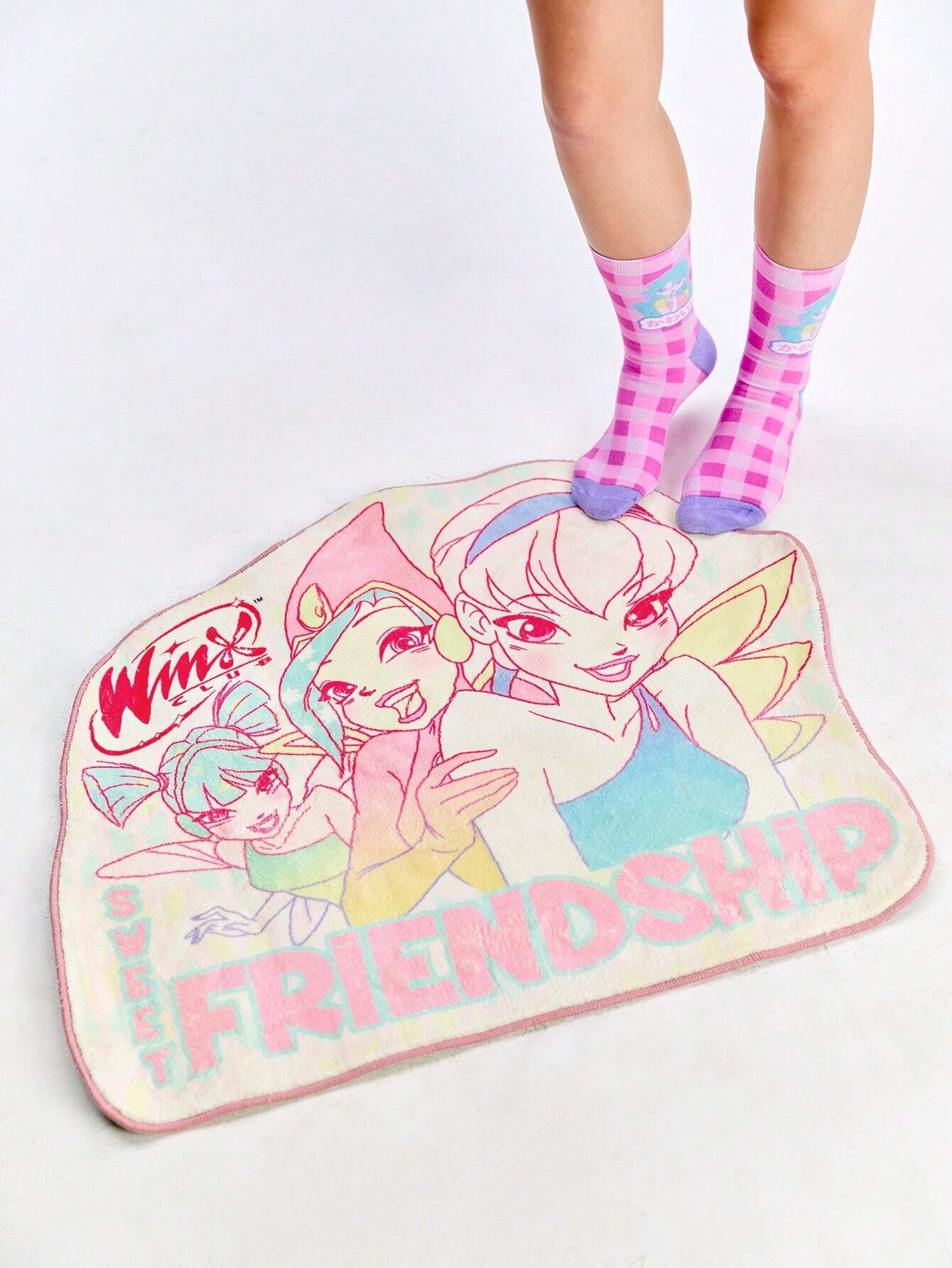 Winx Club X ROMWE سجادة بيضاء ذات حافة مزيفة من الصوف بمقاس 80 سم * 70 سم من علامة تجارية وينكس مانعة للانزلاق قطعة واحدة